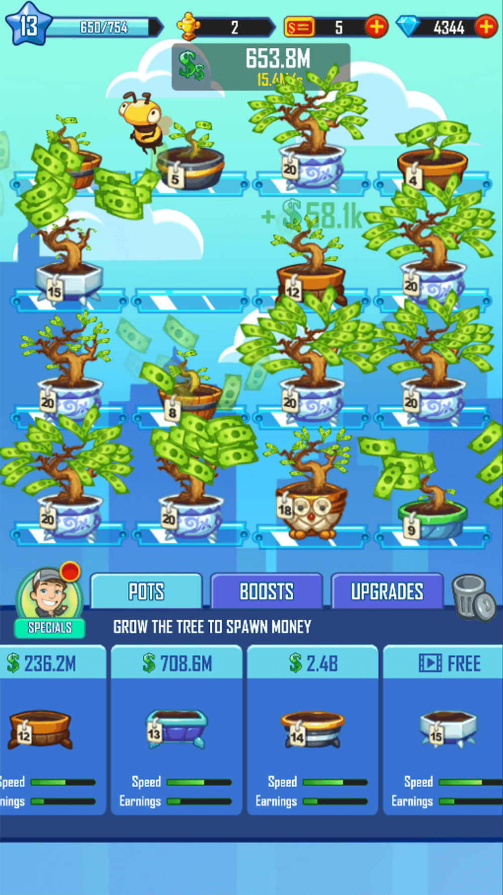 Merge Money apk-en mply performed in the clicker’s direction. You will simply place the potted plants in their correct positions, dragging and dropping them to combine with the same plants to grow into a better pot. And you should also remember that if you do an excellent job of merging your pots, the plants will also grow, and the amount of money produced will also be significantly more. Generate massive amounts of coins, add them to your account balance, and become a cash crop tycoon.