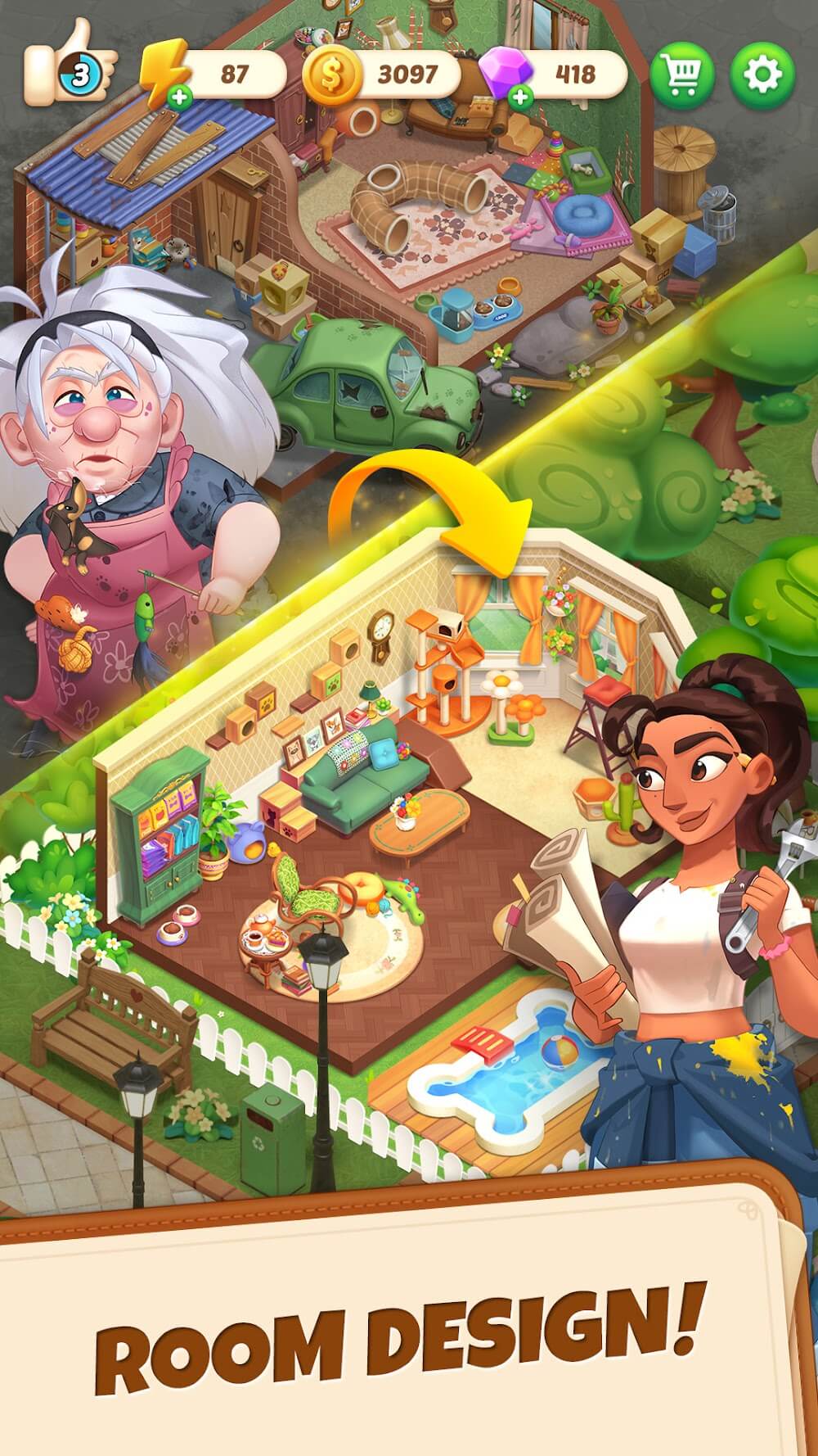 Merge Project Makeover Story Premium gh different levels of play. Players attempt to design and decorate the interior and exterior of their homes in the styles specified by their owners. Not only that, but players can use their bonuses to shop for and unlock various decorative items.GET TO KNOW THE CHARACTERS AND THEIR STORIESPlayers must design, decorate, and meet the wishes and needs of picky guests. Each customer will have different needs, so players must understand and build the house to their specifi