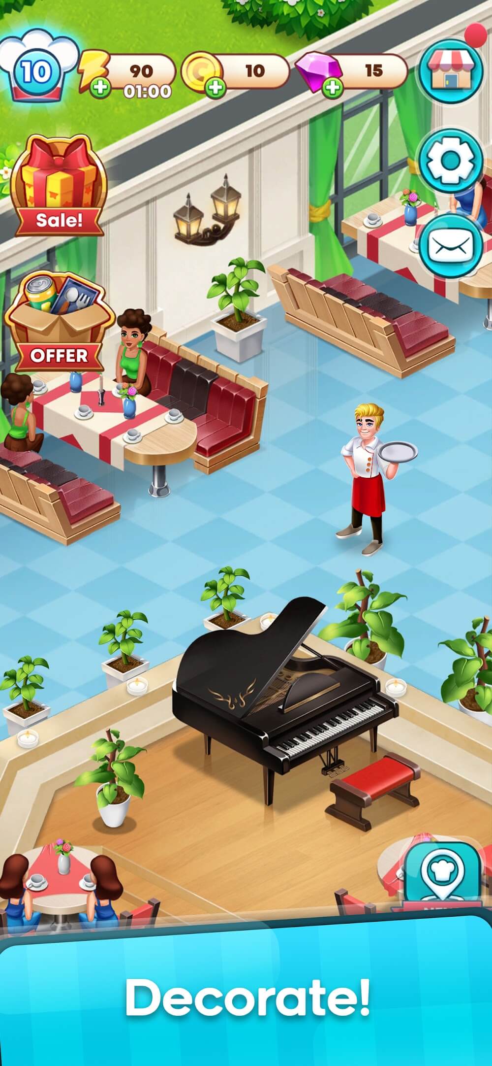Merge Restaurant apk-en d opening more restaurants worldwide.Exciting merge, i.e., combine interesting items from tools, decorations, kitchen equipment, and food.And also merge to get what you need.Decorate, and design your dream restaurant in this game. Here merge the items and serve the food to the customers.And also, fantastic characters are available in this story of the game.This game is the best relaxing and dramatic fun; everyone can enjoy this game by playing this game.