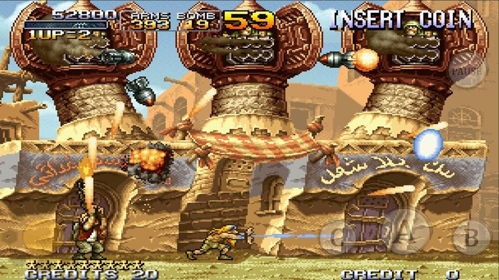 METAL SLUG X is an upgraded version of METAL SLUG 2 with several new features and new weapons to help players have more unique experiences. At the same time, METAL SLUG 2 for mobile devices was also released by SNK CORPORATION. This version has the same design and gameplay as the text of the same name for Neogeo but has been improved to become more attractive. There are many features that METAL SLUG X does not have in this version, and it promises to make players excited.There are not many highlights of METAL SLUG 2 gameplay, an