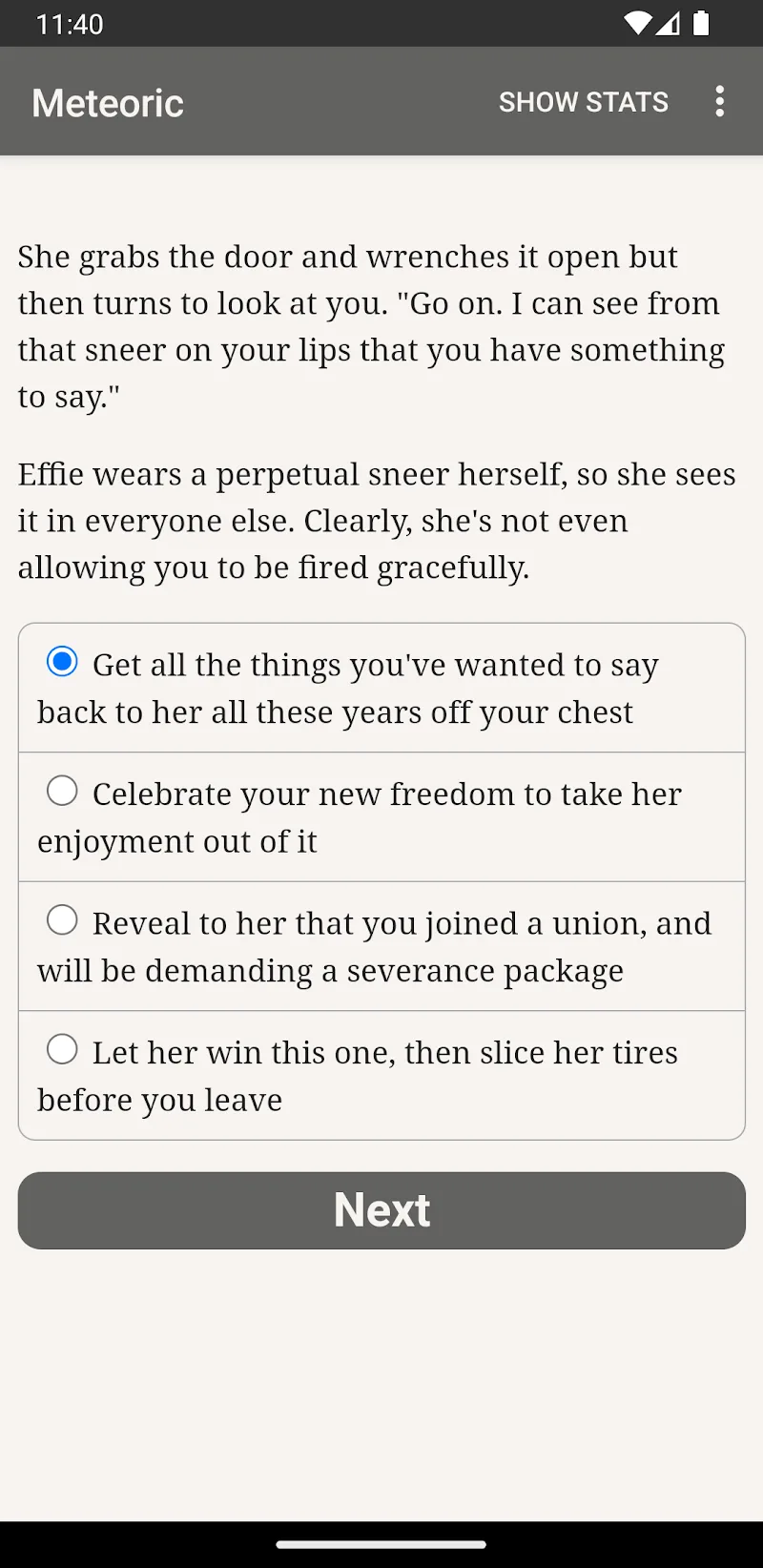 Meteoric Premium ly deep and interesting relationships.Meaningful Moral Dilemmas: Coming to this game, you will come to countless unique and profound situations. Each level will bring you different moral content, bringing you countless dynamic and interesting levels.UNIQUE HORROR STORYComing to this game, you will come across horror stories with unique and attractive content. Making you immersed all day without feeling bored even for a second.Intriguing Magical Premise: You will come to countless