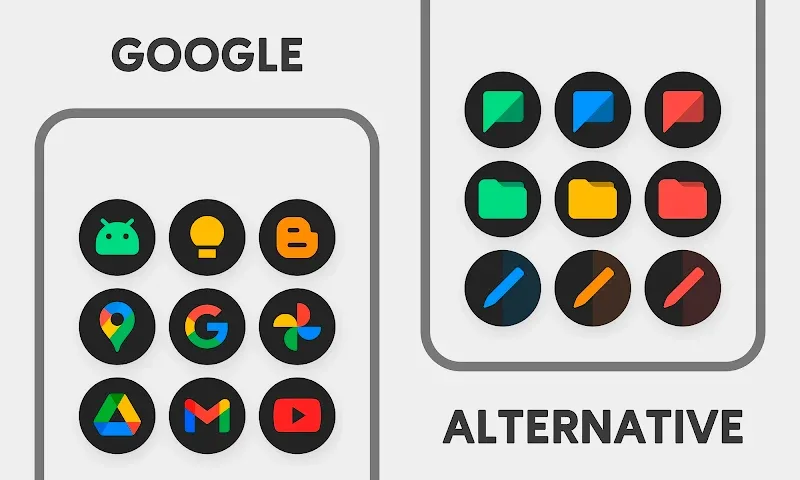 MiDark – Icon Pack (Round) shares a unique icon and wallpaper pack that completely changes the device interface. Users can use new icon templates to replace the old, boring icon system. Suitable wallpaper templates are also shared with users. Each wallpaper is designed according to the idea and has good image quality.3900 CIRCULAR ICONSThe icon pack develops the idea of ​​designing circular icons with many meanings. The application develops a customizable icon system according to the user’s needs. They are allowed to craft an icon template that is consistent with the collection.Extensive App Coverage: The application uses the characteristic strokes of the old icon system to design a new icon pack. The drawings are covered by a glossy circle and have a uniform size. Users can easily apply and create a space with a uniform design.Sleek Uniform Design: The icons in the pack are individually designed to bring a special feeling. Users can easily distinguish the icons through the illustrations. Each icon is meticulously designed with outstanding details.Precision-Crafted Icons: The customization of icons is allowed by the application to create a more complete version. The icon pack can be customized in bulk to achieve uniformity in design. The color and size of the icons will be changed by users according to their needs.300+ MATCHING WALLPAPERSUsers can use hundreds of unique wallpaper patterns for their devices. Each wallpaper is designed from unique ideas and represents an abstract style. Image quality is always a factor that the application cares about when designing wallpapers. The wallpaper collection will have a high level of compatibility with the icon system.Perfect Style Blend: Unique wallpaper packs shared by the application help users find the most complete piece. These wallpapers are specially designed to create a sense of harmony when combined with the icon pack. Users can also express their style when applying this icon pack and wallpaper.High-Resolution Images: Each wallpaper is meticulously designed down to every detail. Users will receive a set of high-resolution wallpapers with sharp details. Image quality will always be guaranteed for the wallpaper pack provided by the application.Cohesive Visual Setup: Circular blocks and many other shapes will be used to decorate the wallpaper. Users can observe the perfect cohesion of the blocks in their wallpaper. This creates a sense of depth and unique layers of meaning for the wallpaper.