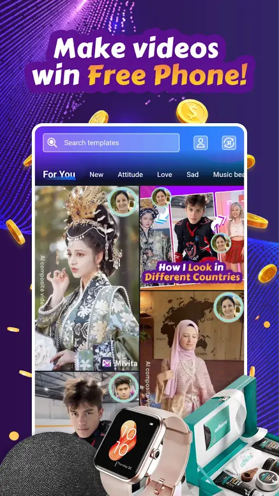 Mivita 2 Mod Apk . Each template is carefully designed with different effects.CREATE VIDEOS THAT ARE STUNNINGIn Mivita, users will be able to create different videos with one feature that they all include your face. So, changing this face is done completely when the user chooses a template he likes in the application’s libr