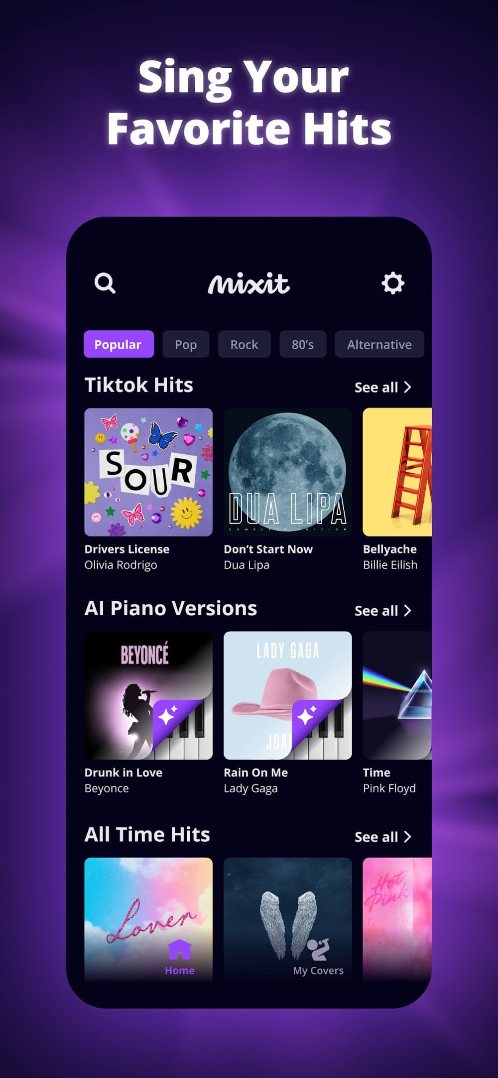 Mixit Sing Create Covers Premium ey have never seen before.AN INCREDIBLE MUSIC GENERATOR WITH LYRICSThe app is an automated music creator with a lyric creator for new songs for users to sing. Using cutting-edge AI technology, users can make stunning renditions of any songs they come by. The app’s powerful lyrics generator and ability to switch between genres to change the songs’ properties and genres make it a versatile tool for bringing your musical ideas to life. Thus, that makes this app is ideal for aspiring artists because it allows them to
