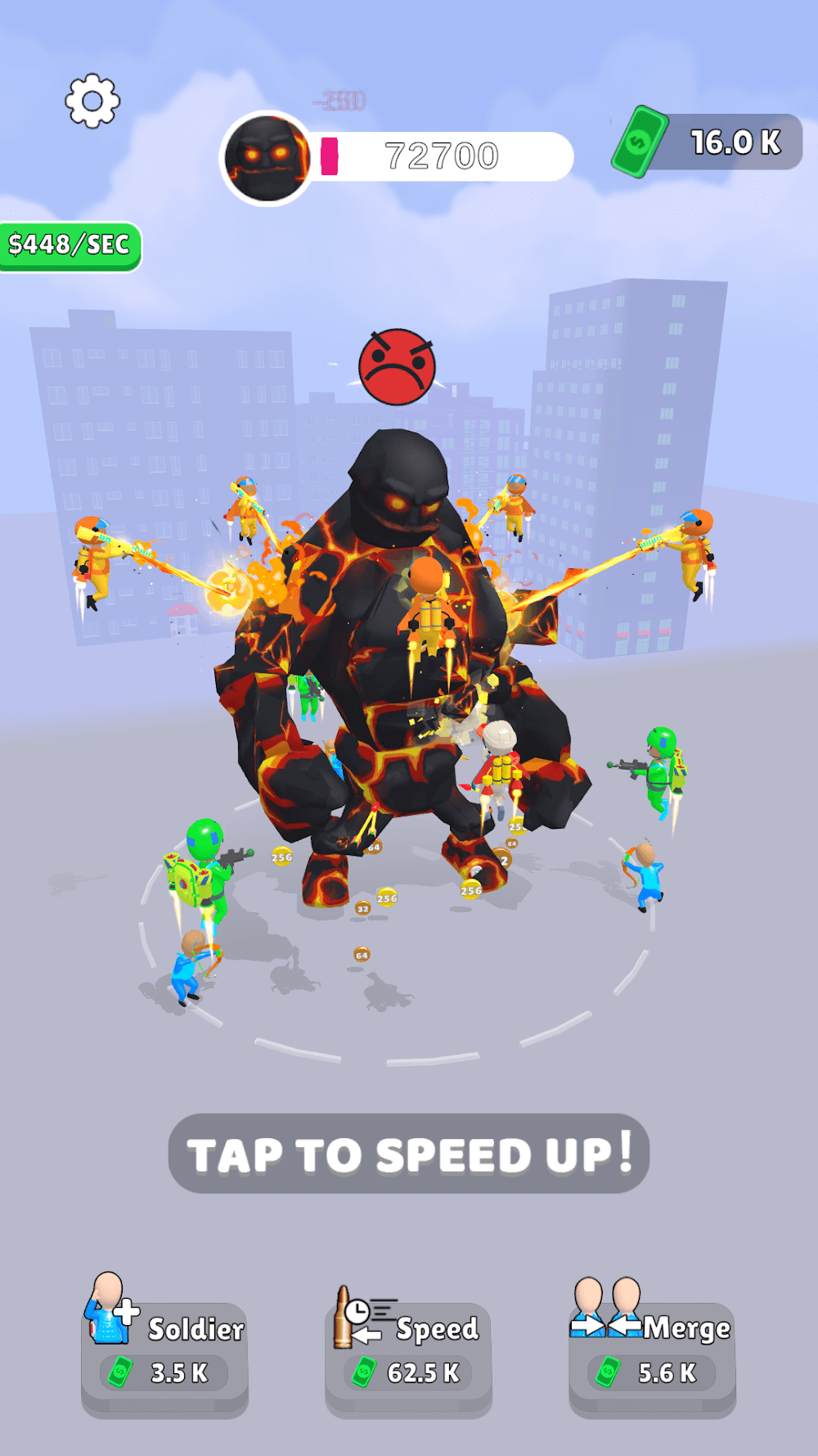 Monster Around apk-en upgrade your speed. The speed costs more than the other two, so use your money wisely. It displays the velocity of money you earn per second. The monsters produce shockwaves to stop you from attacking, but you don’t need to worry. The soldiers will dodge every attack of the beast.Attack the beast until the power decreases to zero. This game increases your thinking ability. Different emojis are displayed to describe the nature of the monsters. Finish the enemy and start the next level freshly.