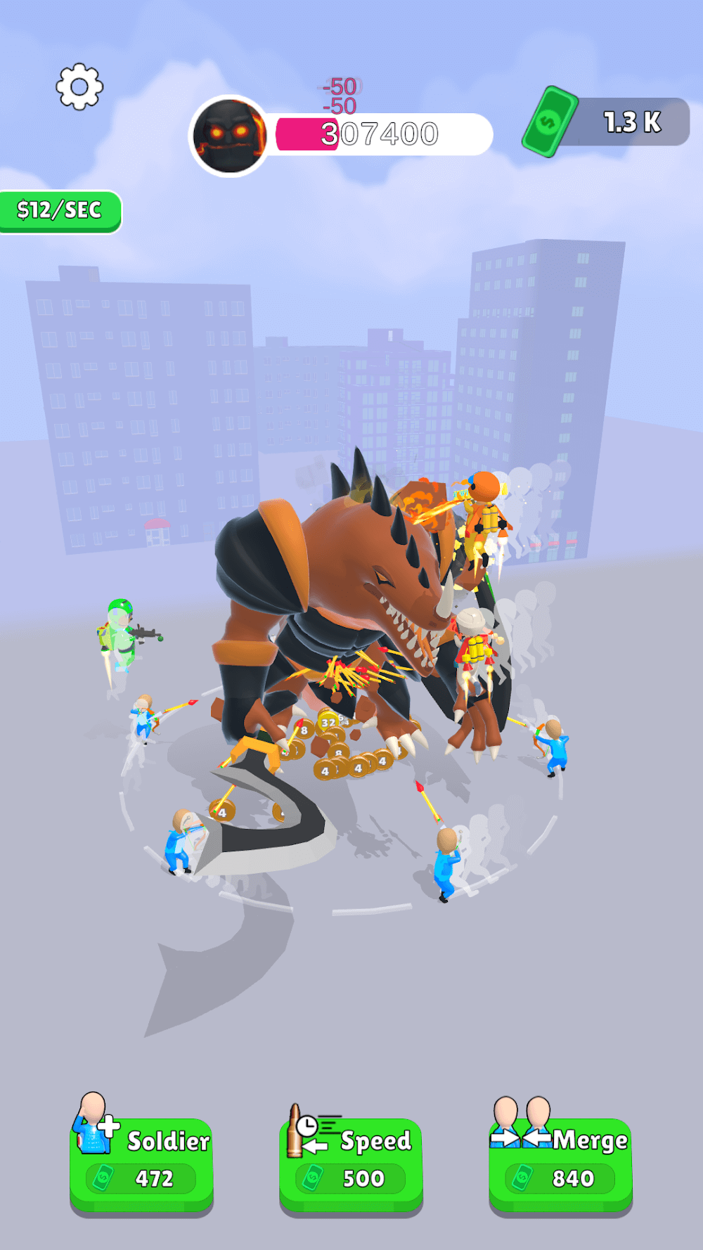 Monster Around Mod Apk pen the game and starts exploring the unlimited action. No signing in, no permissions, just come and play and resume where you stopped.Simple gameplay only tap tap tap, tap makes to attack the monster. The demons will give considerable power in terms of some massive number, and all you need to do is shoot the beast. Shooting makes you earn some money; at the same time, the power of the giant will reduce based on your attacks. Use the cash to lease the soldiers, merge the soldiers, and increa