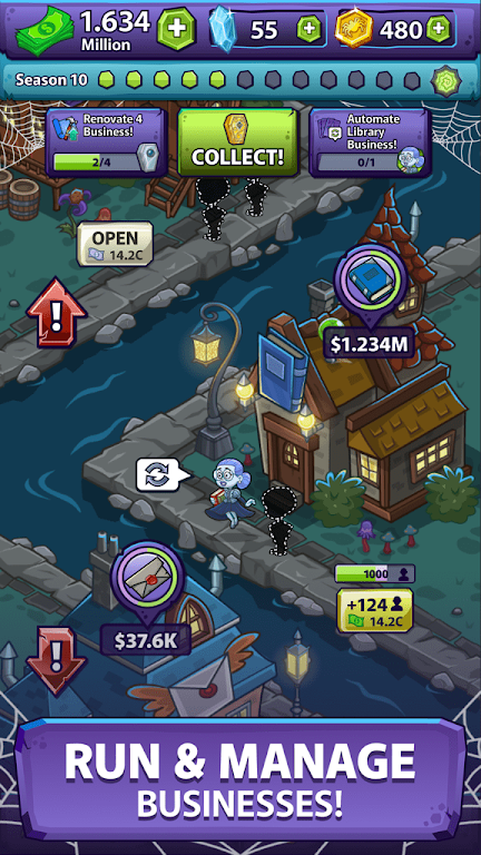 Monster Country Idle Tycoon apk-en also wants you to explore new areas and add new business activities to create a new playground for monsters to appear in this ghost town.Whimsical characters: Create ghost towns with many different shops that are also managed by ghost characters that you have trained.Business expansion: Players expand their empire by acquiring headquarters buildings to facilitate business and revenue development.Customizable haven: Players will take advantage of their shelter to create impressive tourist attractions to attract the attention of others.