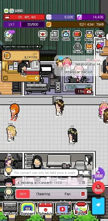 Introducing Monthly Entertainment MOD APK – a thrilling game where you become a K-pop idol manager, produce albums, hold concerts, and interact with fans.Monthly Entertainment, this Korean idol management game, captured my heart from the first moments of experience. I was overwhelmed by the eye-catching graphics system, along with the meticulously and vividly designed idol cast. I feel like I’m entering a colorful and bustling entertainment world. The journey to becoming a talented manager leading his idol group is truly interesting. I personally train, plan promotions, and steer the idols’ careers. The overwhelming joy of seeing your band achieve success and attract a large number of fans is the most wonderful thing.MAKE YOUR OWN K-POP IDOL DEBUT AND MANAGE YOUR ENTERTAINMENT AGENCYIn this game, I can free my imagination, dril and train my trainees, and eventually make them K-Pop musicians that impress fans on stage or star on stage. From designing a program, selecting costumes, practicing for performances to organizing the style of the whole enchanting group, everything is under your control.Design: Thanks to this feature, you can unleash your creativity and transform your idol to your liking from appearance, talent, and personality. It’s interesting to wa