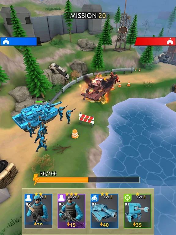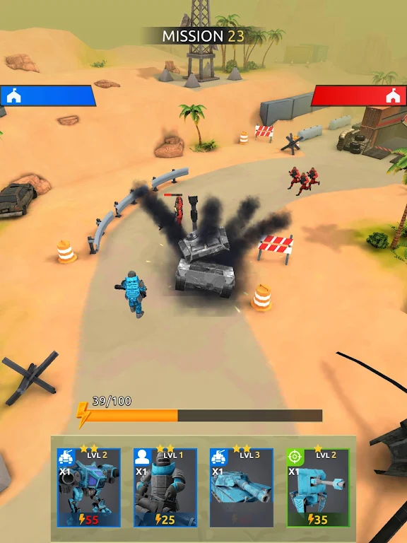 Mortar Clash MOD APK – Command your diverse army in intense battles and outsmart your equal rivals with tactical prowess.COMMAND AND CONQUER IN MORTAR CLASHDeploying troops, executing tactical maneuvers, and dominating the battlefield: Mortar Clash is not just any game, but a realistic military strategy that’s more about your tactics than anything else. Get ready to march, because this game is set to leave you utterly enthralled.DOZENS OF UNIT TYPES AT YOUR FINGERTIPSWith Mortar Clash, you’re the master of your own army. Choices? You’ve got plenty! Whether it’s the sturdy infantry, the powerful tanks, the futuristic mechs, or the behemoth-like armored giants, you have a vast array of uni