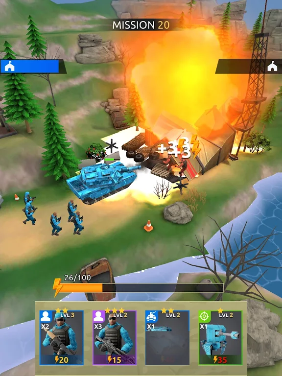 Mortar Clash Premium atch… literally. Every opponent you face is determined to give you a run for your money. It’s like battling your evil twin who’s had just as much coffee as you. Skillfully managing your troops becomes imperative because every part of the map holds a new challenge. And hey, who said world domination was easy?A SPECTACLE TO BEHOLDPicture this: Explosions lighting up the sky, tanks charging, infantry moving in formation, and mechs soaring through the battlefield. It’s not just a game; it’s a full-blown action-packed movie, with you in the director’s chair. But here’s the catch – amidst all this glorious chaos, you can’t lose focus. It’s easy to get caught up in the visuals, but re