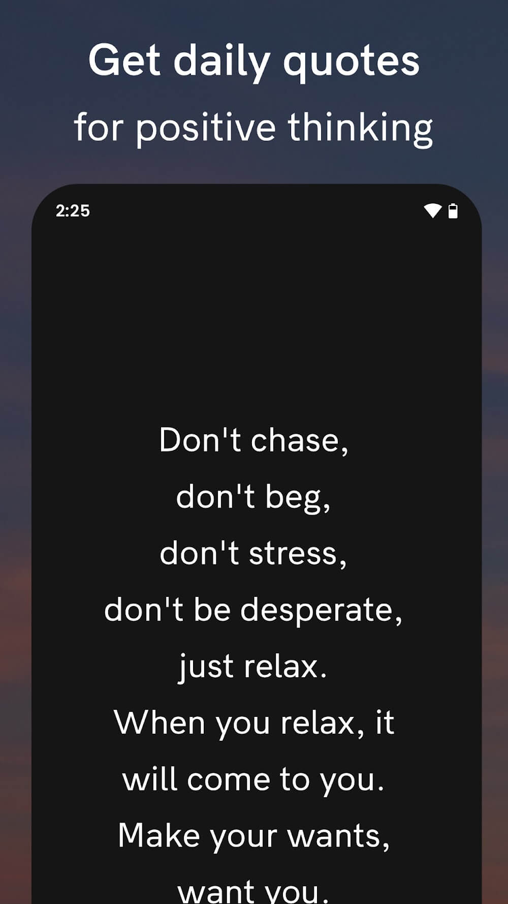 Motivation Mod APK! Join the millions of delighted individuals who use Motivation to improve their daily lives.An incredibly attractive motivating app for you with goals and living ideals, the app will give you a lot of tips as well as positive and important reminders for you in the process of life, you will find this app is very needed for your phone for a better life.DAILY MOTIVATIONAL QUOTESEvery day gives you a very good and meaningful quote, gives you an energetic and vibrant start to the future from famous and influential people, who will wake you up for a better day than ever.Start your day inspired: The beginning of a beautiful new day for you, you will be opened with a motivating quote sent to you every morning for a more energetic and refreshing morning.Quote variety: In the app, there will be nice and engaging sentences, starting with a variety of quotes for better and more interesting sentences in which quotes about achieving goals, confidence, happiness, and more will give you more motivation in your life.Wise words: Of course, you will need a good and exciting start every morning, but a start that starts with inspiring words from famous thinkers, leaders, and artists will wake you up for a more successful day.Positivity boost: There are quotations that boost your motivation quickly when needed, you get them every morning and it’s like lag a dose of motivation medicine, for fresh, vibrant excitement.CUSTOMIZABLE REMINDERSThe app reminders are extremely important, give you the technique as well as the ability to better accomplish all your goals. This will be a good app, especially for you when the reminder is seen as a useful tool.Goal reminders: The app allows you to start by putting a reminder in order to stay motivated towards your goals and habits, you will start with new goals and maintain new habits by reminding them every day.Stay accountable: Create a skill set with responsibility to yourself, you will be reminded about the routine of training, productivity, self-care better, this will be the factor, the motivation extremely important and necessary key to success and achieving every life goal.Keep on track: To go right with your direction and goals, you need reminders as well as support tools, this app will remind you every day and reminding you to go straight with your goals for a better life.Customizable: Users of this app can completely customize the time and duration of reminders, this is an optimization tool and you have full authority to make it faster and easier.SHAREABLE QUOTESSharing and spreading a lot of positive and attractive values to people, players will start using the app for a common purpose and spread the positive to everyone, you will feel incredibly attractive this detail will make you feel more attractive.Social motivation: Users can fully share quotes and motivate, spread positive life values and skills to others, which will have a good effect on the user community as well as society.Inspire others: Players will begin to spread the positive from their collection of quotes, and the positive values that are spread will always bring you beautiful values in life and bring the positive under people.Connect with loved ones: You can connect with your loved ones, this connection is fast and easy because it’s nice and necessary, the beautiful values that you spread will give you surprisingly attractive new values.Expand reach: Better expanding your reach is a driving force for you to drive the wider community. These are going to be exciting new spheres that you should expand and explore and that will be the vital momentum you need.DAILY REFLECTION TRACKINGStarting to see yourself and keep track of your progress, you’re becoming more and more attractive with every detail in the app. Users can share their views and mindsets as they like.Track progress: Players will start to reflect on their daily mood and progress, you will feel the app is very nice and attractive contributing to your daily progress as much as possible.Journal feature: Players will write short notes about their achievements, their gratitude, every note is recorded in the app that will give you a place to store everything they need attention or reminders every day.Review growth: Players will start to look back at the items to see how they progress over time, the progress that is becoming more and more important and necessary for your life goals to be more engaging and amazing.Mindful reflection: An app where you can give your point of view and your attention up at your discretion and easily, players will feel really well.