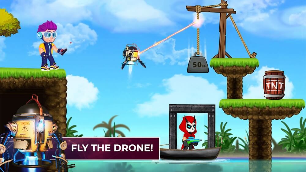 In this shooting game, you aim to solve puzzles instead of continuously improving your shooting skills. Mr. Shooter Mod APK combines adventure and shooting games in a very reasonable way. You have to aim accurately and shoot at the right time to win, and it’s much easier to hit your target when playing in 2D. Puzzles, on the other hand, will be challenging for players to solve. There are many dangers and enemies; your gun is the main weapon to eliminate them and win the conflict. What matters is how you intend to apply your tactical knowledge.PUZZLES THROUGH GUN MASTERYThe ma