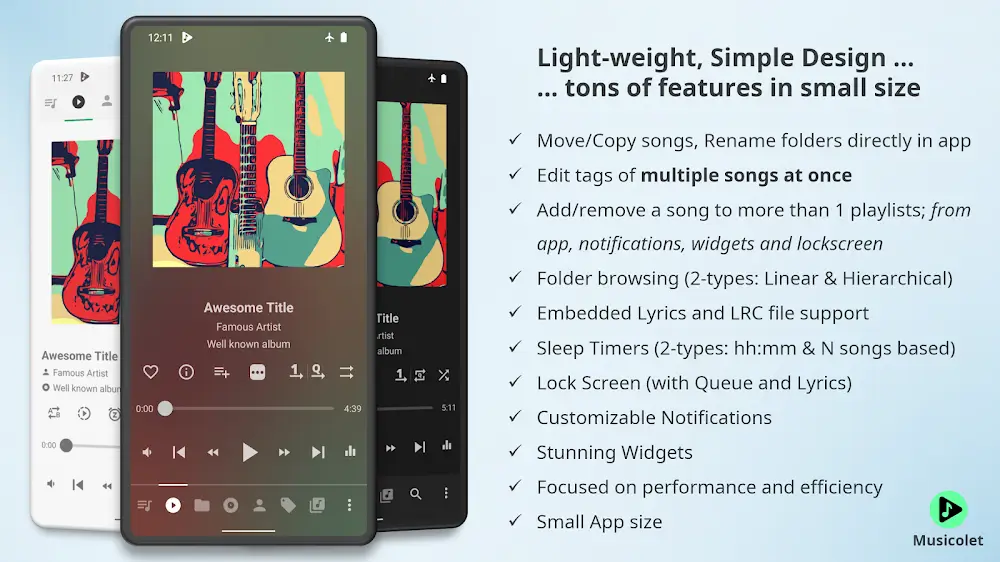 Musicolet Music Player apk-en Playback: I really enjoy the seamless music playback experience that Musicolet Music Player provides. With no sudden pauses or interruptions, I can enjoy my favorite albums and playlists to the fullest.Enhanced Listening: Musicolet Music Player helps you take your music experience to a new level. Now I can feel each note more clearly and in detail, helping me fully immerse myself in the world of sound.BEAUTIFUL HOME SCREEN WIDGETS FOR QUICK MUSIC ACCESSMusicolet Music Player provides beautiful home screen widgets that help you quickly access apps and control music. I can easily change the size and position of the widgets to fit my screen. Thanks to these utilities, I can control music without having to open the application helping me save time and operations.Music Control: I can easily control music right on my smartwatch screen with convenient widgets. I can play music, fast forward, rewind, skip tracks and view information about the song being played with just a few simple steps.Homescreen Access: I don’t need to open the Facer Watch Faces app to control music. I can play music, fast forward, rewind, skip tracks and view song information right from the smartwatch’s main screen.Customizable Style: Facer Watch Faces gives you a great customization experience. You can change the size and design of the widget to fit your style.