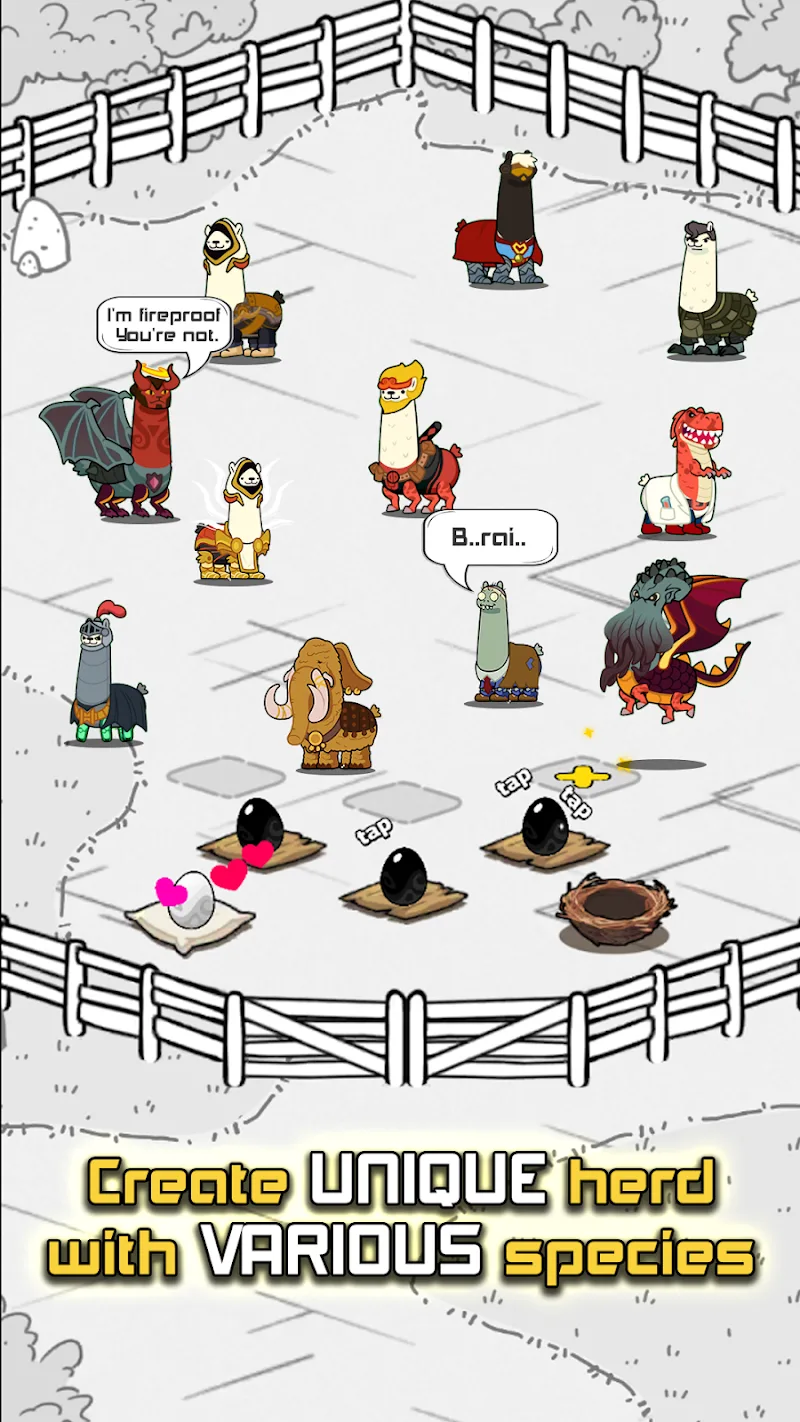 Mutant Llama Idle Hatch Game Mod Apk s meticulous investigation. Not much work is needed, but waiting takes time. For future combat, a collection with multiple powers is ideal.Endless Mutations: The game will surprise its players with endless combinations of mutations, leading to countless species of llamas to explore.Strategic Breeding: Players can also participate in real-life trials with different breeding pairs to create the mutant llama of their dreams.Collector’s Delight: A large farm will be built and filled with wonderful and powerful llamas for players to collect.GROW AND TRAIN YOUR LAMASAlthough each has unique powers, they are not a