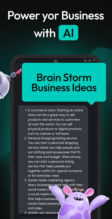 My Ai Chatbot Assistant apk-en t design, marketing, business… to help these projects take place most successfully.Innovative Suggestions: To create new and relevant things, renovate and rearrange every feature in the best way. Don’t forget to introduce it to your friends by sharing them on your social networking sites.Spark Creativity: To help you easily grasp your projects, choose any writing style of your choice.Goal-Oriented Ideas: Accomplish goals quickly and without wasting time through your intelligence and talent.HOMEWORK & ASSIGNMENT HELPERThis application will help you do your homework accurately and effectively. You need to work hard and regularly do your homework to be able to learn more useful knowledge that the application brings. In addition, you can also review the exercises to get different results.Accurate Answers: The answers that the application gives are extremely quick and are explained in the most worthy way. Don’t forget to introduce this game to you specifically.Assignment Improvement: Everyone is free to explore and learn details about this application. You can feel the fun and great experiences.