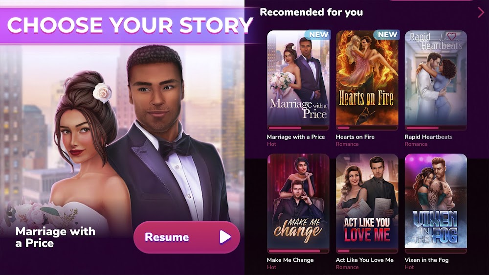 My Fantasy Choose Romance Premium dreams, experiencing moments of happiness and immersion as real, as a way of fulfilling your dreams and desires, will surely be valuable experiences and emotional captivity.Temporary escape: It’s like forgetting the dirt out there, the harsh life out there. Players like hiding in a world of romantic and happy fantasy where they can forgive reality.Indulge desires: Everyone wants to be happy and want to enjoy romance, you’ll enjoy them comfortably while immersed in the game. Satisfy your romantic desires and fulfill your dreams easily.Idealized romance: Bringing a pleasant break from reality to an idealized romantic relationship, it’s an incredibly fresh and attractive romance that brings you real emotions and experiences that are more valuable than ever.CUSTOMIZABLE CHARACTERS & PLOTSThe game allows you to build absolute characters, giving you the fascinating experience of immersing yourself in the stories you write and controlling them, like the way you’re controlling the world you’ve created.Shape the narrative: The story is entirely yours and you can easily control the story according to your wishes and wish