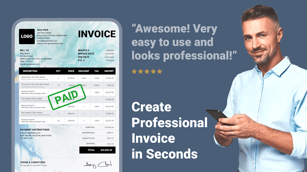 Invoice Maker & Estimate Maker is a feature that helps create invoice templates with full features. From there, managing different payments becomes easier later. You can also completely export this information into different formats, which makes sharing more convenient.PROFESSIONAL INVOICE CREATIONMany people can use the current feature to insert with different products. At the same time, this is often done professionally with support tools because of clarity. dQuick Invoice & Estimates: With just a few simple steps, creating an invoice is not too difficult for many people. However, you need to grasp the basic steps needed afterwards.Customizable Templates: In many different cases, your time can be saved many times. Instead of having to do everything, you can use templates and add the necessary information.Multi-Currency Support: Once you have created a completed invoice, some important parameters need to be carefully considered. For example, currencies, date, and number formats will always be present on any invoice.EASY INVOICE MANAGEMENTAfter creating a certain invoice template, you will not only stop there but also be able to expand some new aspects. Once you have a unified model, you can manage the information easily.Clear Payment Tracking: All future invoices have a different template so you can get the information at any payment. From there, the process of managing a facility is easier.Instant PDF Export: Instead of having to record the information, the system also helps extract the necessary content. In particular, you can choose the appropriate format, which is usually PDF or image.Seamless Sharing Options: Once you have a format, sharing it to other platforms is usually painless. So your work is usually seamless and uninterrupted.