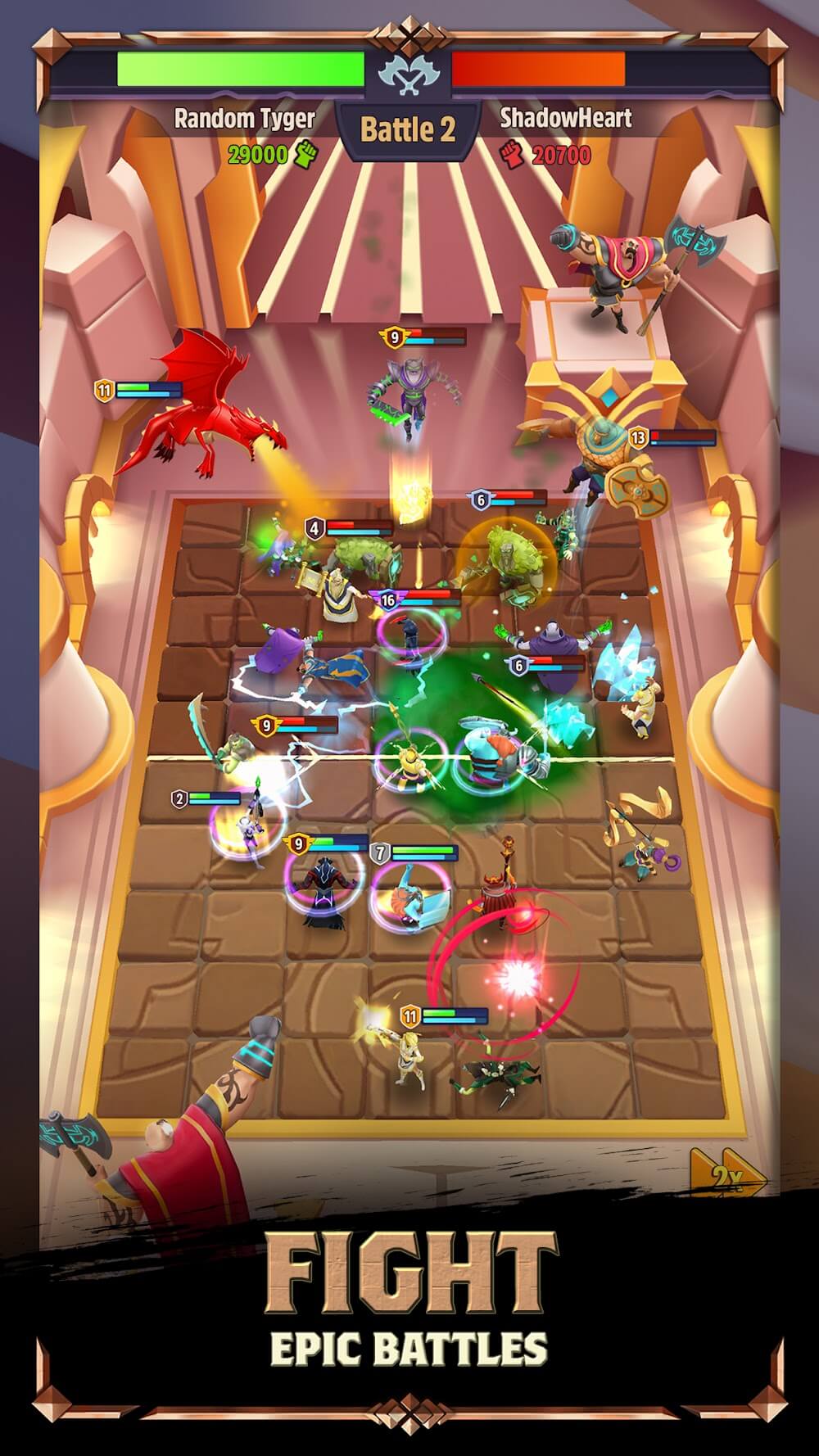 Mythic Legends Mod Apk organizes team battles so that all warriors will be able to compete for strength fairly. These arenas take the form of a chess game. Players will choose their favorite warriors and arrange them in the empty squares in the arena. They will promote their ability when assigned a reasonable fighting position. Therefore, players will have to change the plan so that the squad brings more achievements. Defensive warriors will combine with offensive warriors to create a destructive counterattack for
