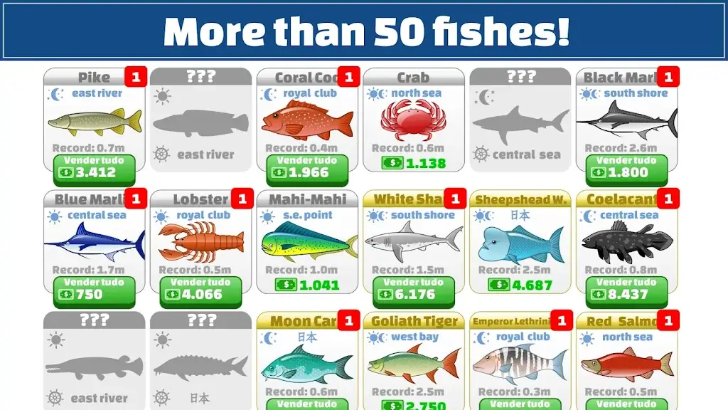 Nautical Life apk-en ll discover 65 different marine species. They will have their own characteristics and are also places for you to organize fishing sessions.Dynamic Fishing Missions: The player’s mission will be to fish along with your friends. Participate in pre-set missions to catch fish. The game offers a variety of gameplay to suit each player.Strategic Gear Choices: Does fishing require a lot of thinking? Of course, it does. If not, this is quite a difficult sport. Therefore, players are provided with 13 fishing rods with separate attributes to fish strategically.