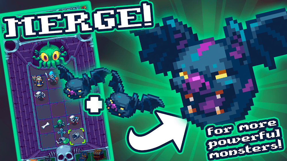 Necromerger Mod Apk urce of the game that will be generated even when the player is offline. And you will also be able to find unique fun with the Merge challenges you will need to go through.Coming to this game, the first and most essential task players will need to perform throughout their game is to nurture and develop Devourer. Your pet is always hungry, and you must constantly search for talent and food to fill its empty belly. Take on the unique challenges as you use your magical powers to summon an army of c