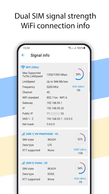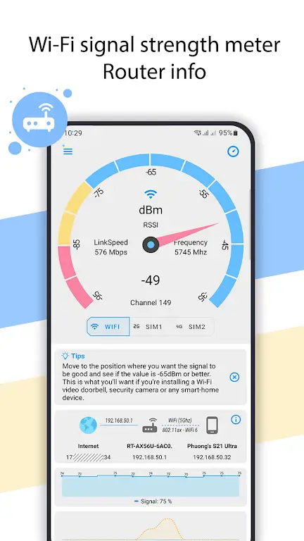 Net Signal Pro MOD APK – Check WiFi and cellular signal strength anywhere, find optimal areas for smart home devices.Connecting to Wifi allows users to access more information. However, the Wifi signal strength will not be stable. Net Signal Pro:WiFi & 5G Meter helps users check and record signal strengths. Information panels are shared directly on the screen for easy monitoring.REAL-TIME SIGNAL STRENGTH ANALYSISThe indicators displayed on the screen are the signal strength of wifi and the device. Users can enter the name and scan manually. This process helps your device connect to the strongest network source. Areas with less support will have weaker connections.Instant Measurement: The measurement process provides useful information to users. They can grasp information related to any network source. The indicators are displayed on the screen. Users can measure signal strength for many different devices.Optimal Placement: Wifi will have strong and weak strengths depending on the user’s location. The application will help users determine the appropriate location to connect to wifi. In addition, the mobile device signal is also measured by the application. The strength of the signal will help users connect faster with everyone.Avoid Weak Zones: If the wifi source is still weak, users can customize the location. Problems that can occur with the network source are all related to distance. The application helps users determine the appropriate distance to get the strongest signal. Areas with unstable signals will be warned.EASY-TO-USE INTERFACEUsers can easily access this application. The space inside the application includes specific features that the application provides. Each feature supports the process of connecting to wifi or mobile signals. Users can freely install and adjust to maximize the application’s capabilities.Simple Design: The features are neatly presented in the main interface. Users can launch any feature. They will be ready to measure and determine the intensity for you. Each calculation will be presented in the form of a chart. Users can view it directly on the screen without much manipulation.Clear Indicators: The reports are made in a minimalist style. Users can read the indicators on the chart provided by the application. Notable milestones will be marked. Signal strength is also distinguished through color.No Expertise Needed: Users can observe the transformation process of the signal measurement table. The arrow will accurately show the index that the application measures. Each different position will give different results. Users will be guided in more detail by the application about the features and how to use it.
