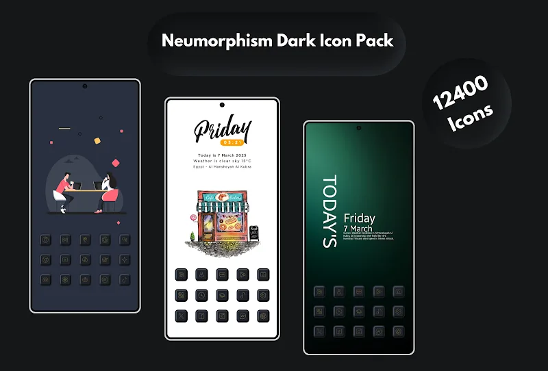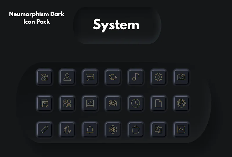 Neumorphism Icon Pack is a suitable choice for those who love dark themes. From there, you can find uniform colors when combining dark blue and gold for each icon. The variety often comes with impressive support that you can try such as adding effects to each design.EXTENSIVE CUSTOMIZATIONThe application impresses users because of the designs that this application brings over time. With a dark background, many can be impressed with the icons that appear with