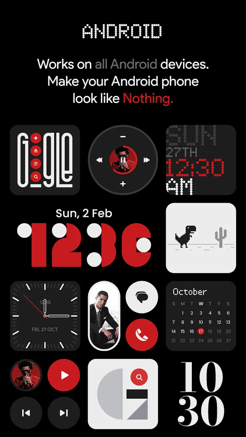 Newthing Widgets Pro apk-en just one touch. Many widgets are also arranged clearly in a limited space.Frequent Design Updates: Many new designs will be added to the application to help users have more choices. The list of widget layouts is also expanded quickly. The application will continuously update new versions containing many beautiful widget layouts.Theme-Compatible Styles: The application is developed in a minimalist style but still fully displays the necessary widgets. Users can observe unique layouts that save maximum space. The main interface of the device is also decorated with contrasting designs in black, red, and white.
