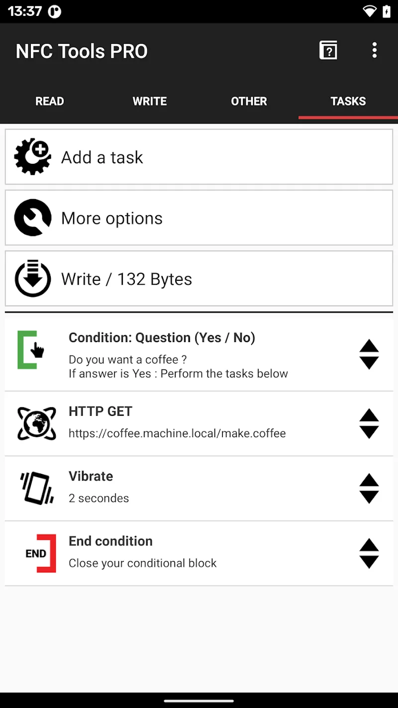 NFC Tools Pro Full Version – Unlocks full app features to program NFC tags with versatile and creative tasks.NFC Tools – Pro Edition takes the powerful NFC functionality of NFC Tools to the next level. With its intuitive interface and robust feature set, NFC Tools Pro lets you fully harness your imagination to create customized NFC routines for work and play.IMPROVED INTERFACE FOR STREAMLINED NFC PROGRAMMINGThe Pro edition builds on the simple and lightweight design of NFC Tools to make reading, writing, and programming NFC tags easier than ever. The improved interface gives you quicker access to all available tasks and features without clutter or complications. You’ll be able to set up even complex NFC tag routines in no time.UNLIMITED ACCESS TO FULL LIBRARY OF NFC TASKSWhile the free NFC Tools app offers an impressive range of capabilities, NFC Tools Pro really opens the floodgates. You get unlimited access to the app’s full library of over 200 customizable tasks covering everything from phone automation to social media to home automation and much more. Without any restrictions on using and combining these building blocks, you’re free to get creative in employing NFC technology in your life.ADVANCED EXCLUSIVE FEATURES FOR POWER USERSFor those who really want to get the most out of NFC capabilities, NFC Tools Pro exclusive features take things to the next level. The profile management system lets you save profiles containing your customized tasks and reuse them anytime. You can now import existing NFC tags to quickly edit associated tasks. Other advanced functionality allows you to trigger tasks without a physical tag present, emulate a virtual NFC tag right from your device, build conditional logic into sequences, and more.ENDLESS INTEGRATION POSSIBILITIESWith the robust feature set unlocked by NFC Tools Pro, the possibilities for integrating NFC technology into your home, office, or hobby projects are endless. Program customized tap-to-run routines for controlling your smartphone, tablet, computer, or smart home devices. Automate social media posting just by tapping your phone. Build interactive gaming elements with NFC chips. Attach NFC tags to objects or locations for location-based reminders and alerts. The only real limit is your imagination.INTUITIVE AND SUPPORTIVEDespite packing an immense amount of functionality under the hood, NFC Tools Pro manages to maintain an intuitive and user-friendly interface. Creating even complex NFC programs is visual and streamlined. And should you ever need assistance bringing your NFC visions to life, the development team is ready to promptly help troubleshoot any issues.UNLOCK YOUR NFC POTENTIALIf you’re ready to take your use of NFC technology to the next level at home, work, or play, NFC Tools – Pro Edition has everything you need. This feature-packed editor, manager and toolkit empowers you to easily tap into the full capabilities of NFC for customized automation, productivity, and creativity. Unlock your NFC potential today by upgrading to NFC Tools Pro!