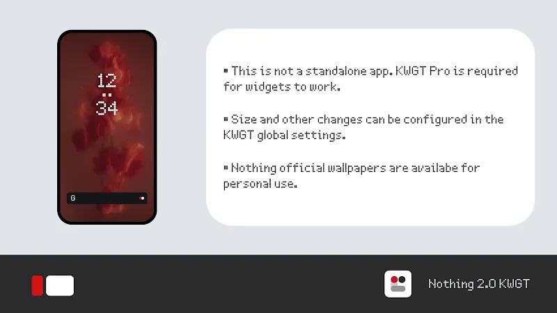 Nothing 3 0 Kwgt Premium le Size Adjustment: The application allows you to use it smoothly whether you are connected to 4g or Wi-Fi. Even when you are in places with a weak internet connection, the application can run smoothly and without lag.NOTHING-INSPIRED DESIGNYou will enjoy an endless digital world, the application always brings you the best and newest digital technologies to bring you the most perfect and new experiences.Unique Visual Identity: The application brings extremely convenient and beautiful di