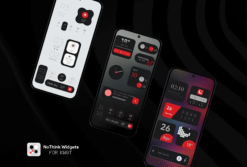 Nothink Widgets For Kwgt Premium and satisfying moments of use.Visual Harmony: You will own an extremely professional interface. Bringing you extremely harmonious and eye-catching interfaces. Making you satisfied every time you use your device.CUSTOMIZABLE DESIGNComing to this application, you can design your device interface according to your preferences and usage. Bringing you the perfect personal interface without any limits.Full Control: In this application, you will quickly take full control of your device. Helping you manage your phone ea