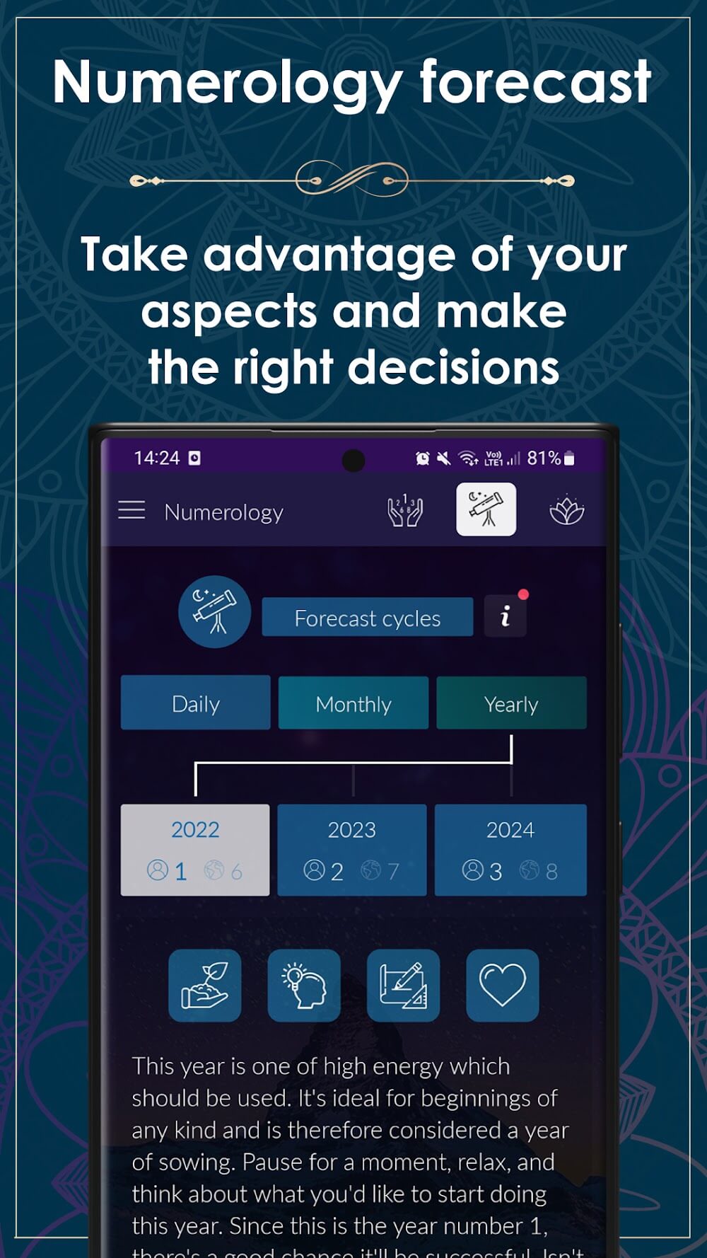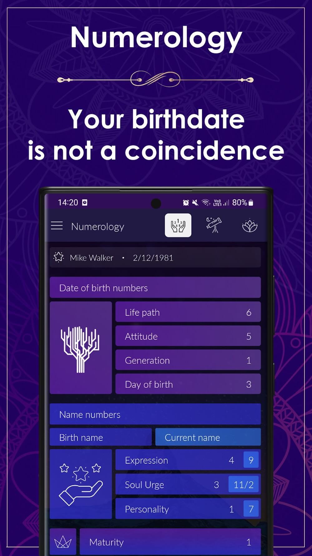 Numerology Rediscover Yourself helps users discover themselves through master numbers. At the same time, each person often spends time understanding themselves and continuously progressing in life. Empty feelings will be quickly replaced by strong motivations for development.LIFE PATH INSIGHTSUsers sometimes have different silences and feel empty in their souls. When you enjoy the features of the application, similar feelings will be quickly eliminated.Purposeful Journey Guide: Each person can find useful lessons related to life. From there, they can receive more motivation to continue the journey and enjoy the present time.Core Self Clarity: The parameters provided often reveal the mysteries of each person’s personality and abilities. Therefore, you can clearly know your own abilities over time.Destiny Alignment Tool: Users take advantage of the application’s features to receive suitable motivations. Specifically, they need to know the development path to reach a new destination.EXPRESSION NUMBER POWERSelf-discovery is a necessary mechanism that everyone needs to do. At the same time, a lot of interesting information can be unlocked and quickly create new motivation for each person.Talent Map Revealer: To avoid feeling empty, you need to know more about your own abilities. Specifically, the application will help you know more about natural skills, gifts, and strengths.Potential Activation Key: The system not only provides information but also helps you exploit the potential of each aspect. Therefore, you can choose a path that suits you.Life Path Supporter: Your talents can be promoted in some areas when you take advantage of the application’s features. From there, you can expand your understanding of them.