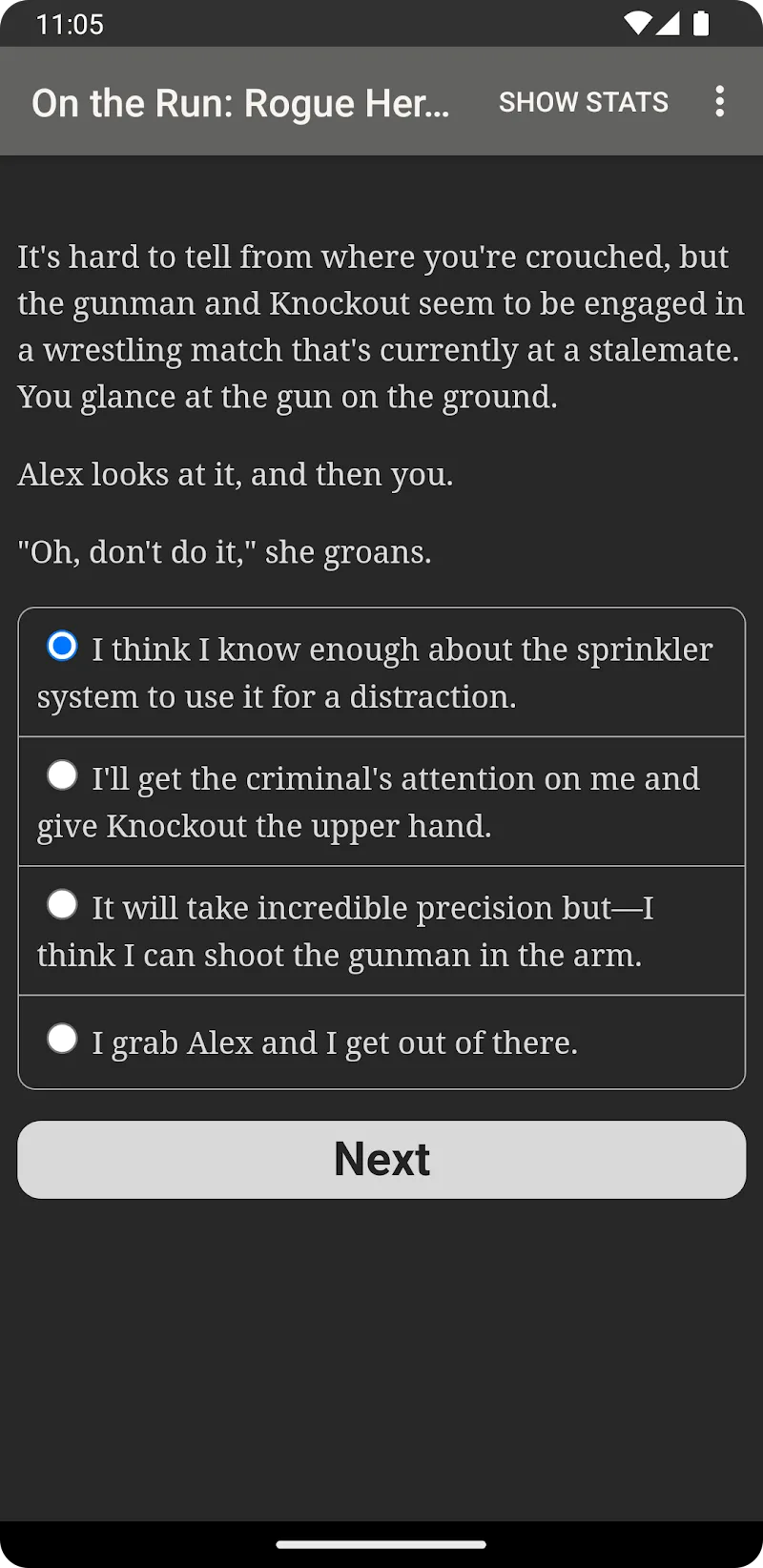 On The Run Rogue Heroes Mod Apk ill be the answer in the end.CHOOSE YOUR OWN ADVENTURE STORYTELLINGOne of the most attractive features of this game is the ability to role-play. Normally, reading an author’s novel will often cause boredom and sometimes quite conservative guidance. But with this game, you will be able to choose and make decisions to guide your story. Players can enjoy special diversity by choosing to feel like male or female characters and many other special cases.Custom Story: This mobile novel can offer its readers a whop