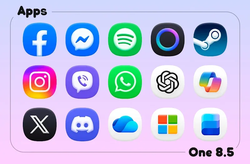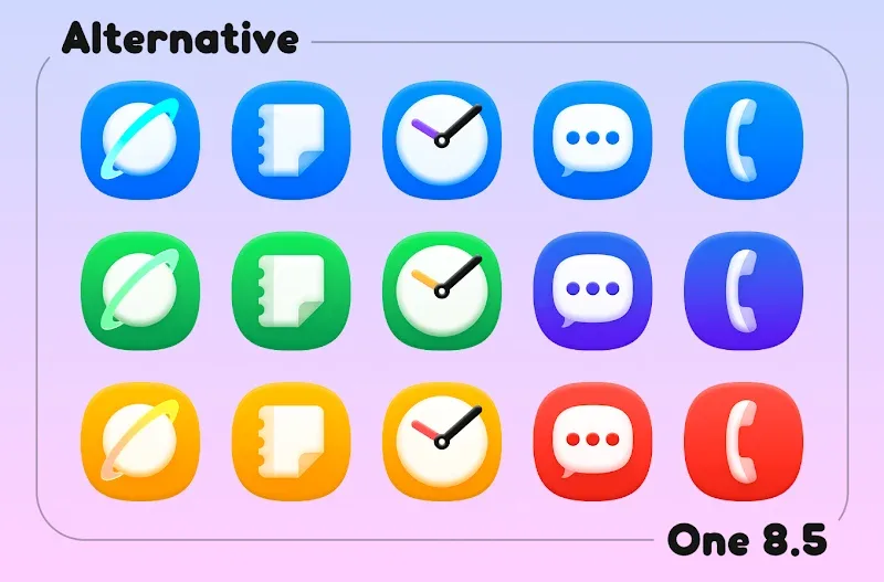 One 8.5 – Icon Pack offers a massive collection of high-quality icons. This app provides icons with diverse themes and styles, giving you countless fresh and unique looks to replace the boring default interface. What are you waiting for? Go ahead and beautify your device now!MASSIVE VISUAL COLLECTIONThis app offers a huge and endless collection of images. With this collection, you’ll find high-quality images with the richest themes and styles. Providing an incredibly engaging and enjoyable experience.Huge Icon Library: This app provides a massive icon library with diverse themes. Meticulously designed icons, crafted down to the smallest detail. Will provide you with the most perfect interfaces. This offers an extremely engaging and rich user experience.Consistent Design Style: The application provides a consistent and synchronized interface. From icons to wallpapers. It delivers a perfect and professional look. Ensuring your satisfaction every time you use your device.Frequent Icon Updates: New icons are added weekly. Your icon collection will always expand. Providing you with an endless library of icons to use without any limitations.LAUNCHER FRIENDLY SUPPORTWith this application, you can use it on various operating systems. From low-end to high-end. Providing you with the smoothest and most seamless user experience.Wide Launcher Compatibility: This app works with any launcher without any difficulty. Providing an extremely convenient and smart user experience. Not all apps offer this attractive convenience.Easy Apply Process: The app allows you to apply processes quickly and easily. Without spending too much time on installation. All processes are simplified for easy and quick use.Wallpaper Integration Pack: Beyond just icons, the app also offers a collection of high-quality wallpapers. These artistic wallpapers provide sharp images with unique artistic styles. Transforming your device screen into a captivating and interesting art museum.