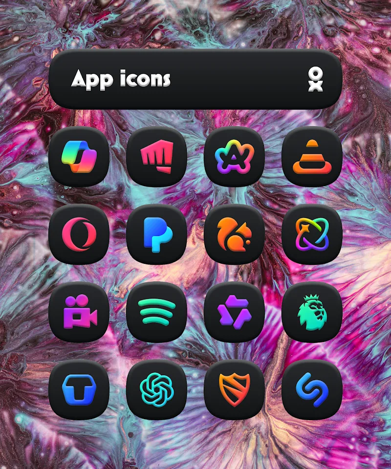 New interfaces with attractive themes and styles will be brought to One UI 3D Dark Icon Pack. Coming to this application, new icons with the sharpest and most unique designs will bring you a completely new interface. The application also provides you with the most complete and convenient toolkit. This toolkit will help you adjust and refresh the device interface more easily. Come here and refresh the device interface right away.EXTENSIVE ICON COLLECTIONThe application will bring you an extremely large collecti