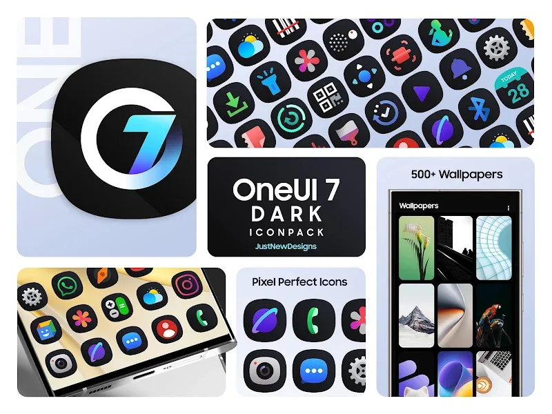 One UI Dark IconPack will bring you the most unique and fresh interfaces. You will be presented with extremely high-quality and sophisticated icons. The application also provides you with a warehouse of artistic wallpapers so you can change the wallpaper and make your phone more luxurious. The carefully selected wallpapers will make you extremely satisfied when using them. What are you waiting for without coming to this application right away?LARGE ICON VARIETYThe application will bring you a large and endless warehouse of icons. The icons are handcrafted with soft lines that will bring you extremely attractive and interesting user experiences.Icon Count: Coming to this application, you will quickly be able to find icons that match your personality and character. Bringing you extremely perfect and high-quality experiences.Consistent Style: The application will bring you an extremely consistent style. You will own styles and interfaces that are synchronized with each other, giving you a beauty with extremely high aesthetics.Regular Updates: The application will always be updated regularly, bringing you new features and improving the quality of the application. New icons will also be added to you every week, so that you have more attractive new icons to use.PREMIUM USER EXPERIENCEComing to this application, you will come to a more advanced user experience. The application will bring you more advanced tools and features, giving you the most attractive and engaging experiences.Matching Wallpapers: The application will bring you a store of extremely high-quality wallpapers. The high-quality and sophisticated artistic images will bring you an extremely luxurious and noble interface.Smart Dashboard: You will come to a smart dashboard. With this dashboard, you will quickly be able to adjust and edit everything on your phone in the easiest way.Dynamic Support: The application will bring you extremely attractive automatic support. You can quickly edit without having to do manual operations, giving you an extremely convenient user experience.