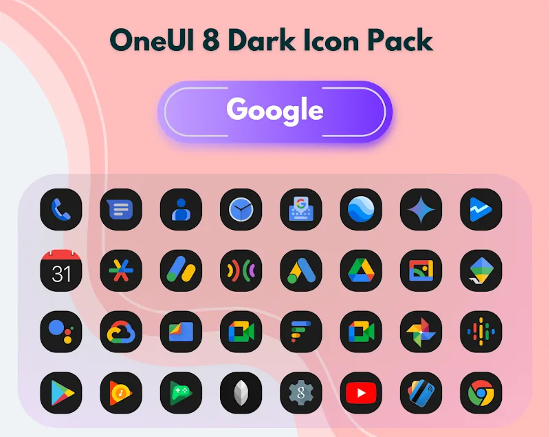 Oneui 8 Dark Icon Pack Premium clearly on your device without encountering any difficulties.Receives frequent updates: The application will be continuously updated regularly every week. New icons will always be added for you. Bringing you an extremely large and endless collection for you to freely use.COHESIVE DARK AESTHETICComing to this application, you will come to extremely attractive and sophisticated dark aesthetic adhesions. With this design, your device will become much more luxurious, immersing you ev