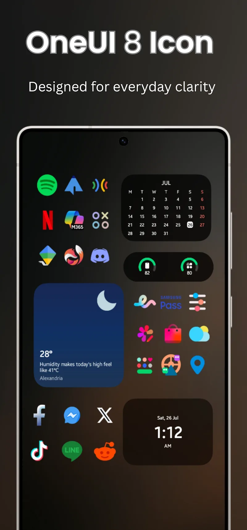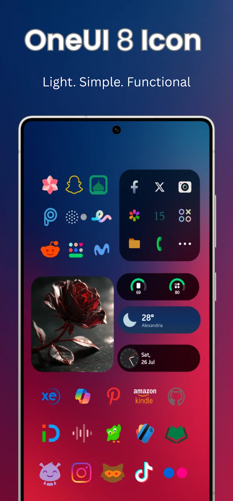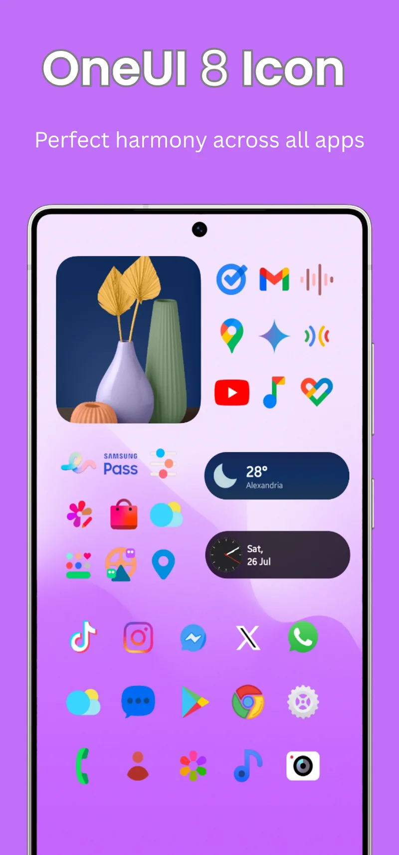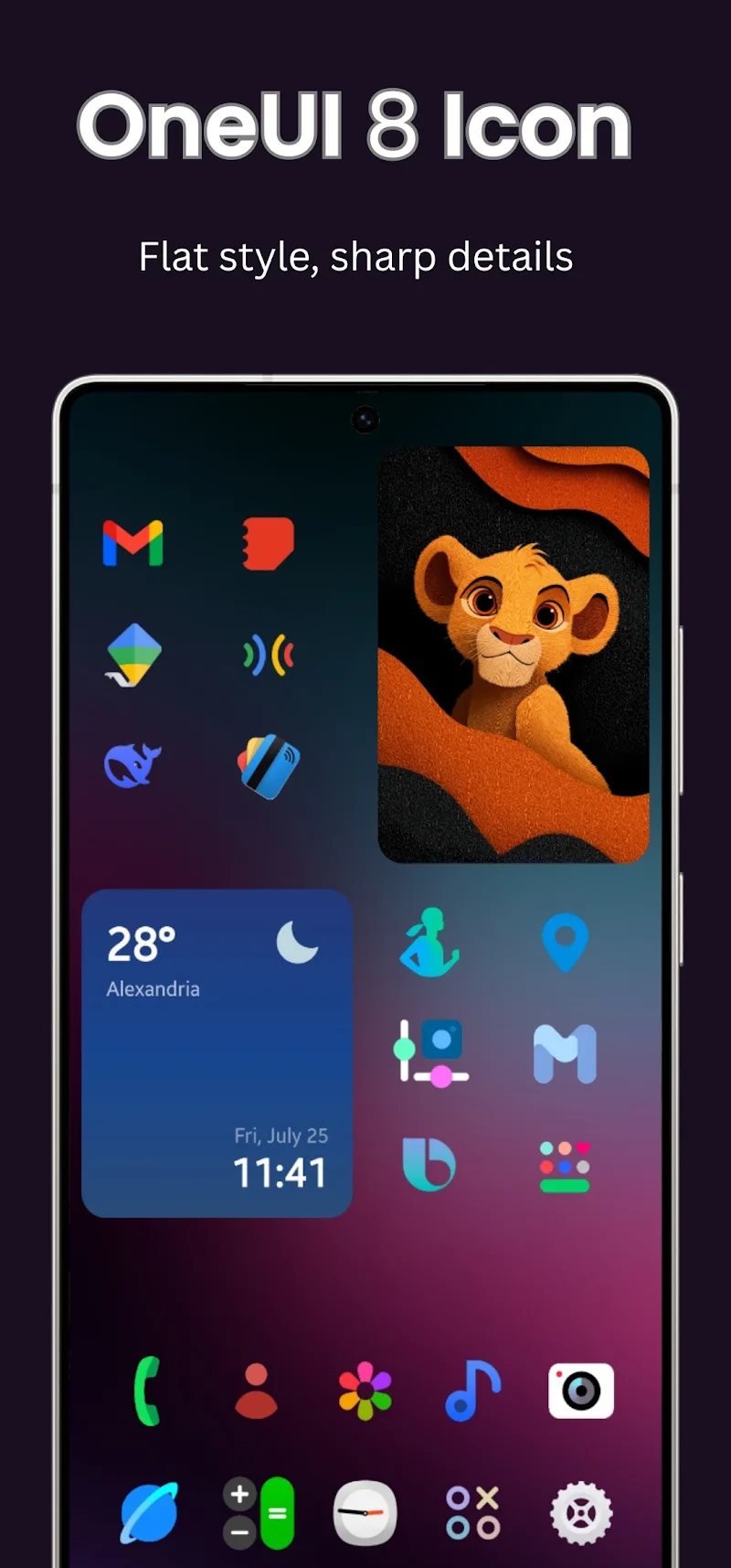 Oneui 8 Icon Pack Premium alendar collection designed in a consistent style with the icon pack. The device interface will become more modern when users apply the icon packs and dynamic calendars provided by the application.COMPLETE AESTHETIC SUITEThe application designs many other utilities for users to experience. They can customize and add new necessary utilities to the screen. The library of wallpapers designed specifically for each theme is also shared with users. The application will bring memorable visual experiences.Matching Custom Widgets: Many new utilities will be added to the screen by users. Users have more powerful assistants the using