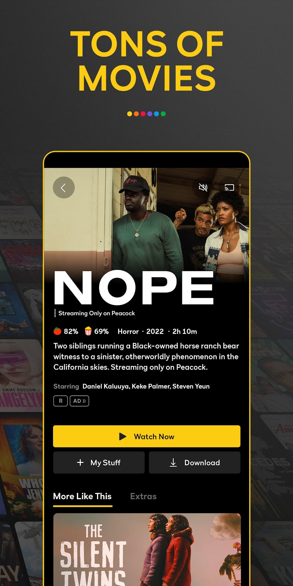 Peacock Tv Stream Tv Movies Mod Apk hard to find in any other streaming service.Prestigious Content: By using this app, you will not only be entertained but also have the opportunity to enjoy high-quality television programs that are highly appreciated by experts.Star Power: The presence of A-list actors not only increases the appeal of the programs that this application is allowed to show but also ensures high acting quality, giving you the experience of watching dramas. Great.MOVIES FROM THEATERS TO YOUR SCREENPeacock TV gives you the opportunity to enjoy the latest blockbusters right at home, just a short time after their premiere in cinemas. With this app, you can easily access and watch the latest movies from major studios. This is really great because we can now keep up with the latest movie trends without having to leave the house.Huge Library: