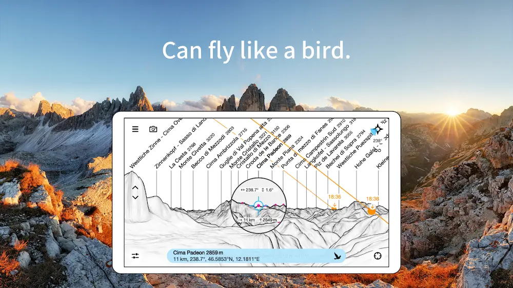 Peakfinder Premium mic. All information is updated continuously, and data is collected from official sources, so you do not need to worry about the application’s credibility.LEARN ABOUT EVERY MOUNTAIN IN DETAILIn addition to some basic information, such as the mountain’s name, PeakFinder also helps users explore the mountains in more detail. You need to make a swipe, and you can see more information on the screen, such as alt