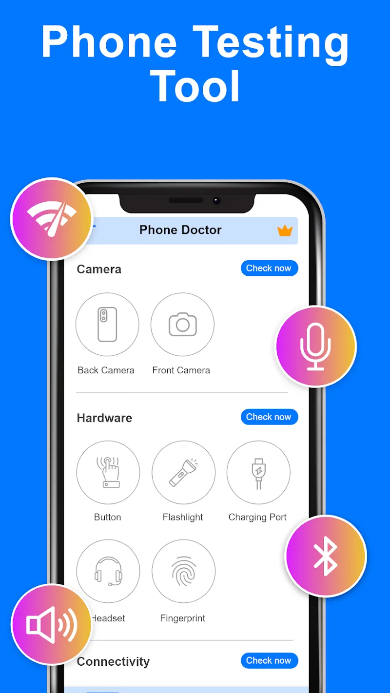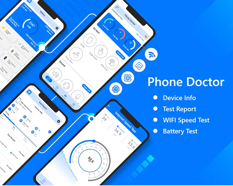 Phone Doctor helps users check their phone devices in the most objective way. The application provides you with quality customizations and specific evaluation tables so that users can better understand the settings of the device. At the same time, if there is an abnormality, the application will notify you to promptly handle it before the hole is too large.DEVICE DIAGNOSTICSDiagnosing the device is very important to help users limit data leaks or unnecessary incidents. You will know the memory capacity to adjust the downloaded files and delete unnecessary settings. The application is also like an expert analyzing RAM holes and battery quality in real time.Performance Insights: Information will be provided in detail so that users can grasp and make necessary adjustments. In this application, you will learn about the current battery status, CPU in the device, RAM, and memory.Hardware Testing: The application helps users check the hardware components in the device, specifically the microphone, sensor system, or even the camera mode.Real-Time Metrics: Providing specific status as well as real-time data will be very important because it helps you fix problems that have just occurred while protecting your device effectively.NETWORK MONITORINGIn addition to analysis, the application also helps you monitor the transmission speed, and if there is a problem, it will immediately report it for a solution. The application will control the quality of the settings, and if it detects an unsafe feature, it will deny access. Users can update new features from the application and change the interface to be more realistic than before.Speed Tracking: Through this application, users can monitor the internet speed or whether the network connection is stable or not, thanks to which you have more experience.Connection Testing: Users will be able to check the wifi connection and see if there is any abnormality in the network line. The application will connect to mobile data if the wifi internet is not enough to provide.Optimal Connectivity: The application will ensure optimal connections during use, be more seamless, and give objective suggestions about quality internet for users to choose from.