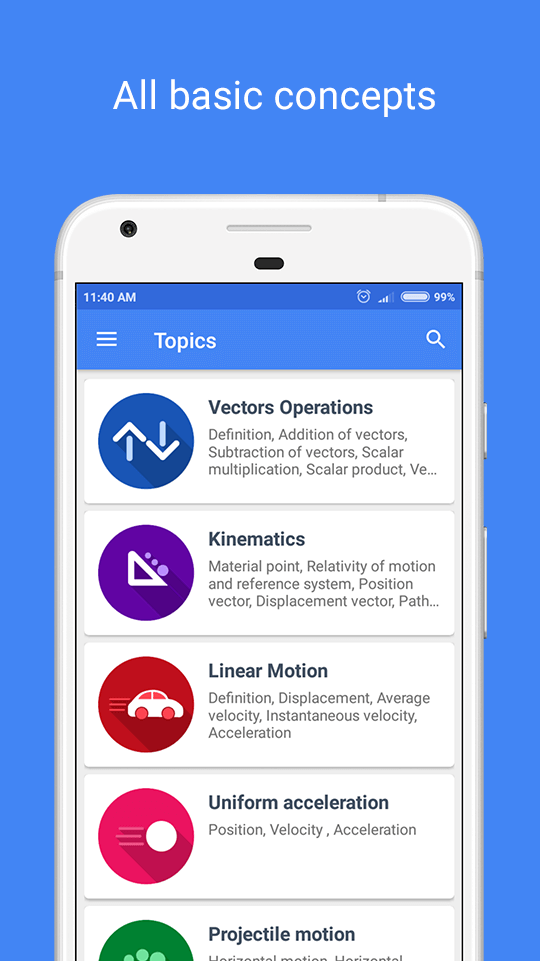 Physics Pro Notes Formulas Mod Apk nquer physics knowledge. Each knowledge is explained clearly so that learning is easy and can start from zero.Vital Concepts Included: The developer has gathered the most important topics in physics. From there, users can explore related elements, such as formulas and equations, to understand the nature of knowledge.Multi-Level Learning: Over time, the application becomes suitable for many different audiences. It will grasp your information so that providing the for