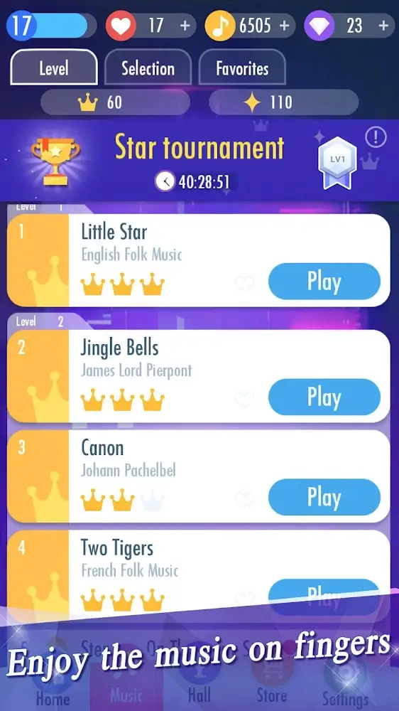 Piano Tiles 2 Premium impressive classical songs or burning EDM.Regular Updates: New songs on the market will be quickly updated to any player. At the same time, their work is often practiced to adapt to the new tempo.ENGAGING CHALLENGES & COMPETITIONThroughout the game, anyone can see the levels of challenge that this game brings. From there, limited events are the opportunity to help express yourself.Bonus Challenges & Events: rewards along the way will often