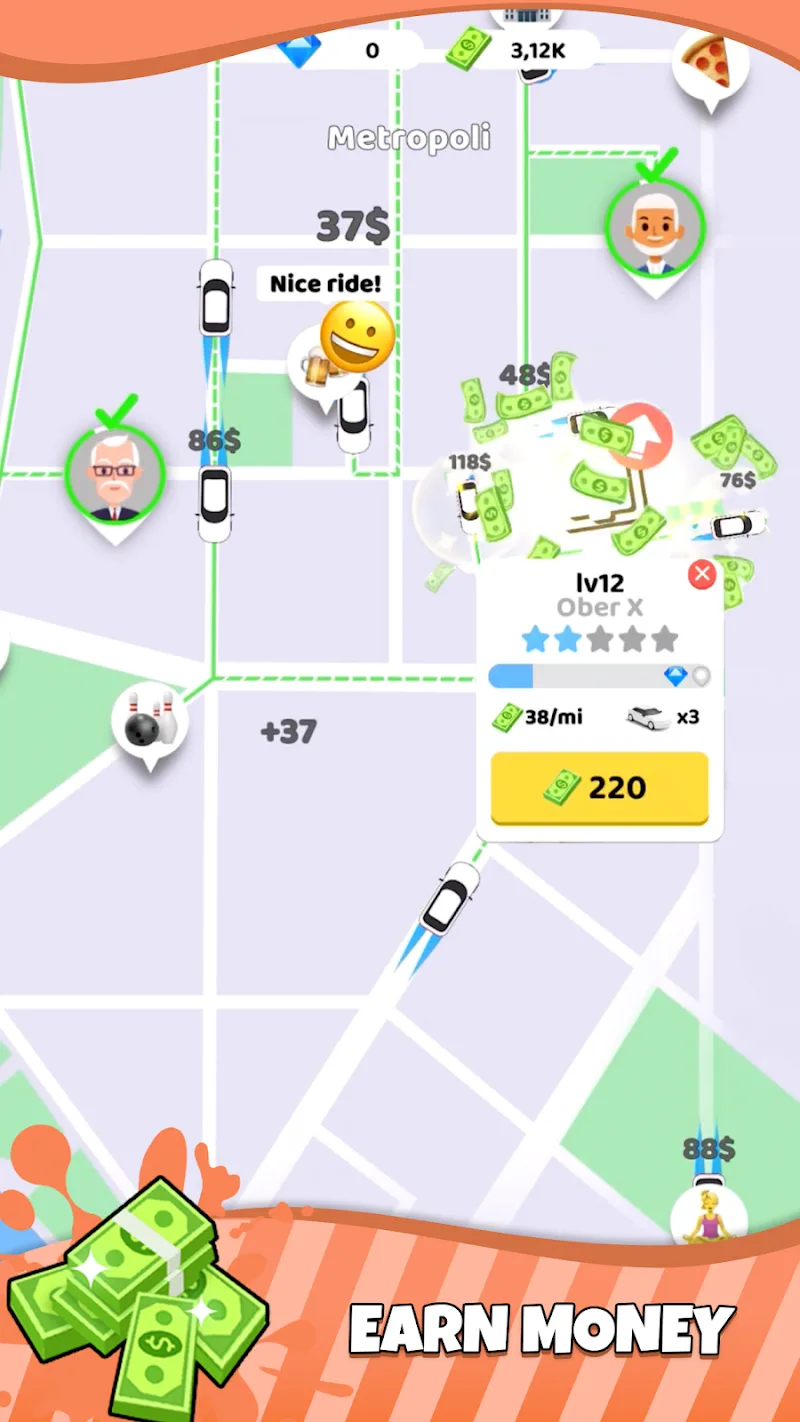 Pick Me Up Idle Mod Apk iately be able to immerse yourself in attractive games without having to spend too much time getting used to them.Start With Taps: You can start your games with taps. You just need to tap and tap to quickly control your cars to pick up and drop off passengers quickly and most effectively.Relaxing Stress-Free Fun: Coming to this game, you will find extremely attractive games. You will come to extremely relaxing levels without any pressure when playing.Adapts Your Schedule