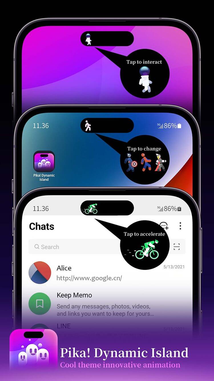 Pika Dynamic Island Mod Apk g features added by the system.INTERACTIVE ANIMATION THEMESChanging the current experience for smartphones is often a regular need of many people. Therefore, trying new themes is often sought after over time.Creative & Fun: Anyone can enjoy many impressively designed styles. Specifically, you can meet funny characters like Angry Birds and Funny Cat after applying them.Personalized Interaction: Besides the immobile elements, users are also interested in interact
