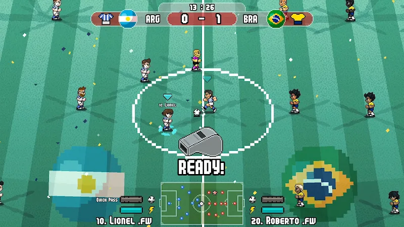 Pixel Cup Soccer – Ultimate APK – Retro-style arcade soccer game with multiple modes.Impressive friendly matches will appear in Pixel Cup Soccer – Ultimate and this is where you can show your passion. The game brings you a lot of challenges and you have to try to complete the assigned tasks. More specifically, you train a potential course of players with the ability to handle situations smoothly, besides being able to participate in international tournaments.RETRO-STYLE ARCADE GAMEPLAYYou will form a team of carefully selected players. Thanks to these players,