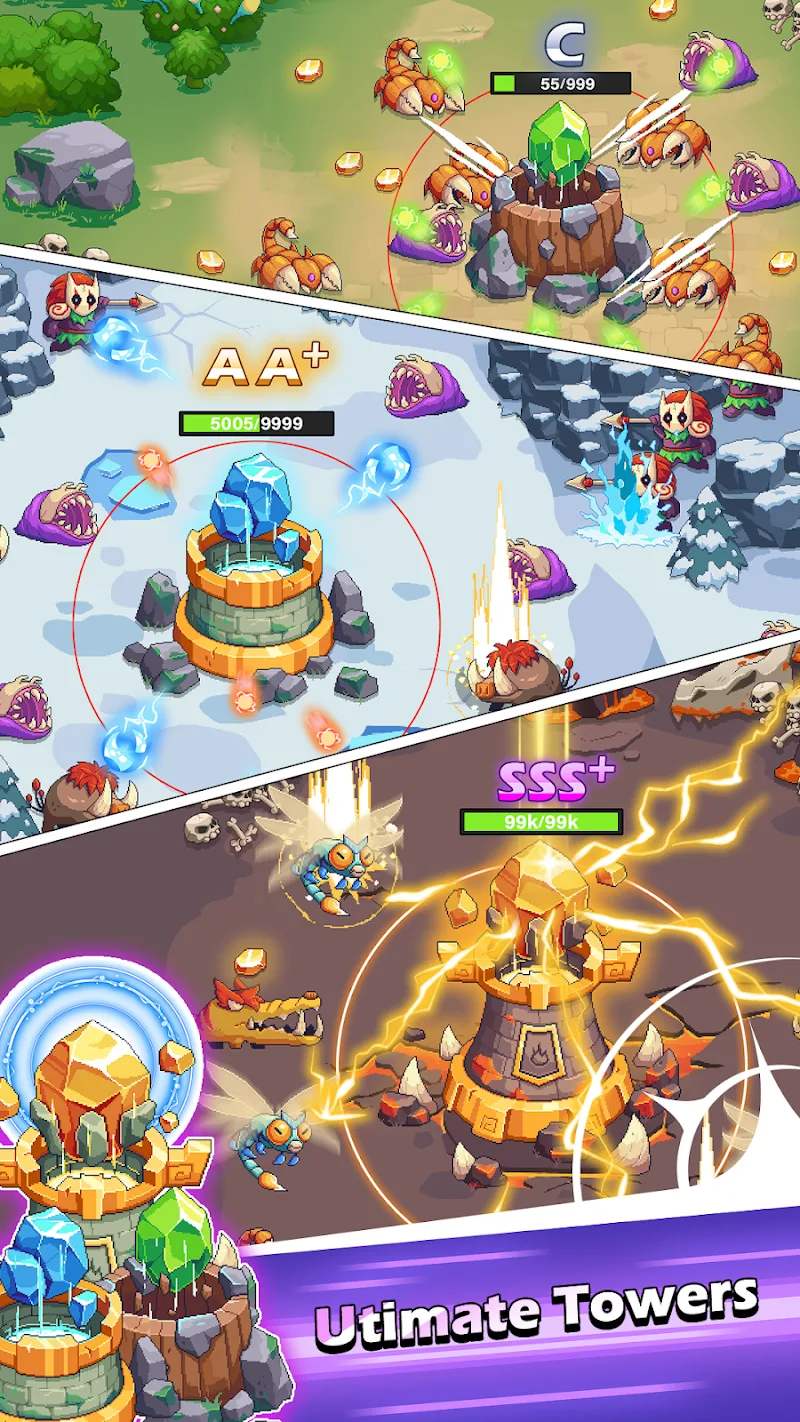 Pixel Defense Idle Td apk-en ve.Rich Rewards: Players must fight enemies, earn money and diamonds to upgrade their abilities and advance in the process of building towers dedicated to your world.Comprehensive Upgrades: Players need to increase their strength through levels, creating a strong attack and thereby helping you gain an advantage in each specific situation.Progressive Unlocks: Proceed to explore more new stories, ensure comprehensive strength, and continuously promote your own value through the challenges given.