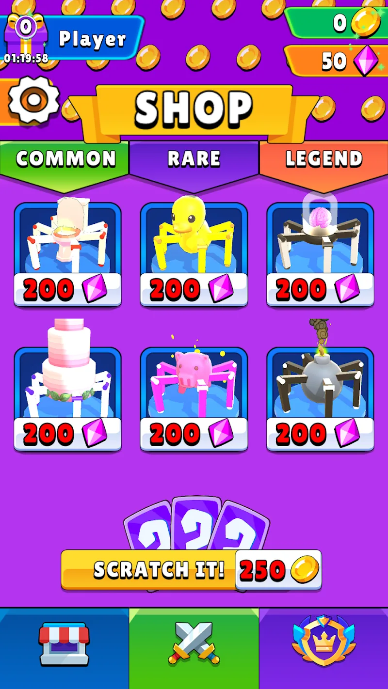 Pocket Spiders is a game genre that focuses on speed. When participating in the game, players must flexibly combine dodging skills, control the speed of the racing car, and survive wild obstacles in knockout matches.Playing the game, each player will take on the role of controlling the spider with special equipment, participating in extremely chaotic races, collecting rewards along the way, and each time they win, the more levels they pass, the more chances they have to become the champion of this game.SIMPLE GAMEPLAY WITH MANY DIFFERENT RACING MODESThe game Pocket Spiders has a gameplay that revolves around three main actions that are quite simple, but this will help players focus on enjoyi