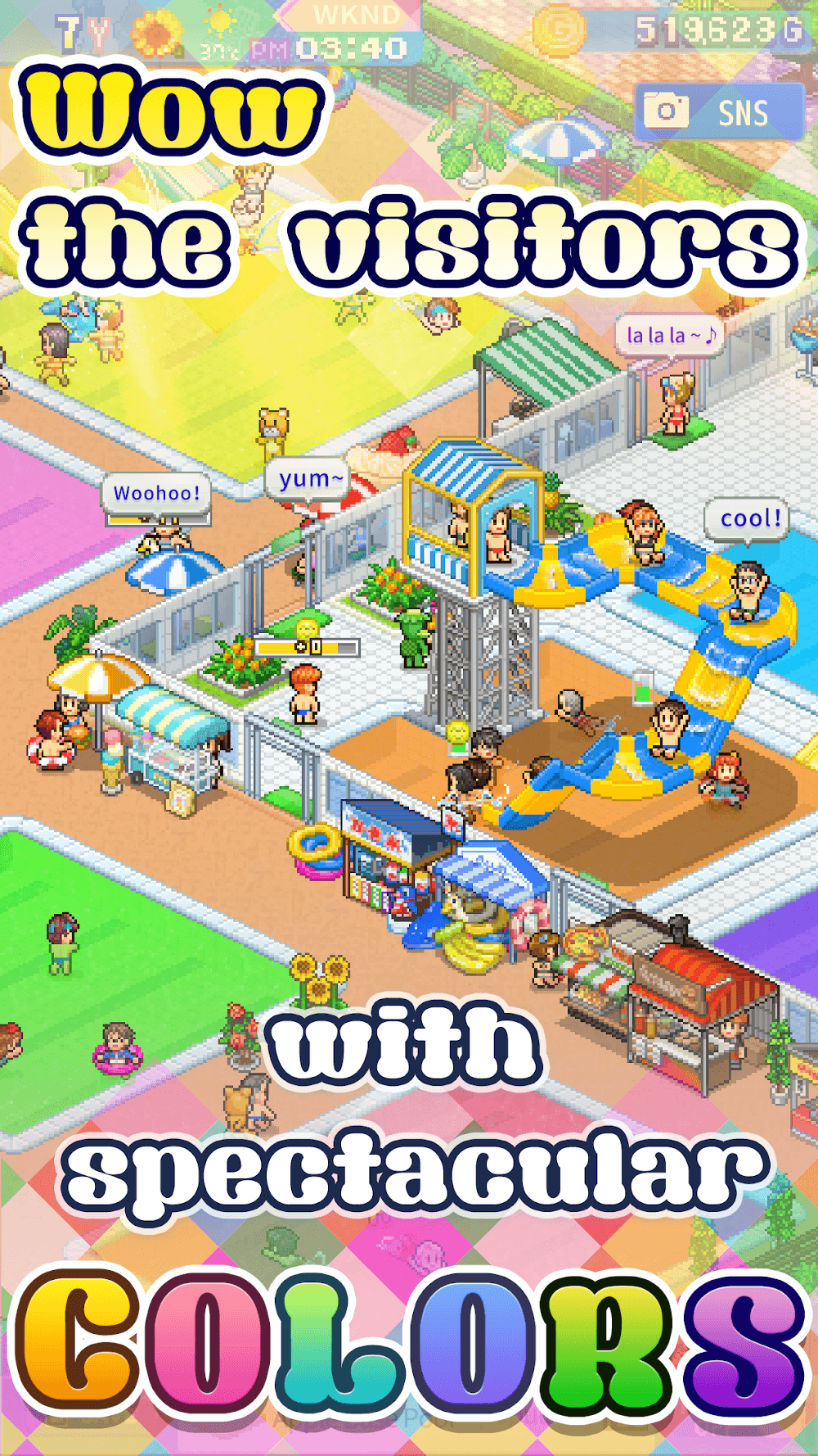 Pool Slide Story Premium ign: Players will be able to participate in water slides and attractions that can be customized to create unique experiences.Sensory Pool Magic: The system has been designed with pools with colors and scents that create a special feature for the visitor’s experience.VISITOR ENGAGEMENTThe game also hopes that it will be able to become an endless entertainment venue that can attract a large number of visitors to visit and experience. Therefore, the water slides inside the endless pools that the game br