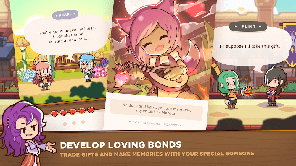Postknight 2 Premium cultural beauty and customs of that place.DELIGHTFUL DIALOGUESDialogues in the game world are not only interesting but also provide useful mission information for each place the player goes to help players gain a deeper understanding of the adventure they are exploring and have an engaging experience.Diverse Characters: In the world of the game, players will be able to chat directly with a cast of characters from main characters to supporting characters. The characters’ stories provide meaningful information to help players overcome challenges.Info Choices: Players can choose to request additional useful information for the journey from the characters’ conversations and will receive humorous responses from them. Brings a colorful experience and increases excitement for players.Worldbuilding: Players can choose to interact to learn more about the world and residents in the city. This is an important step for players to complete the mission more easily.RESONATING ROMANCESPlayers c