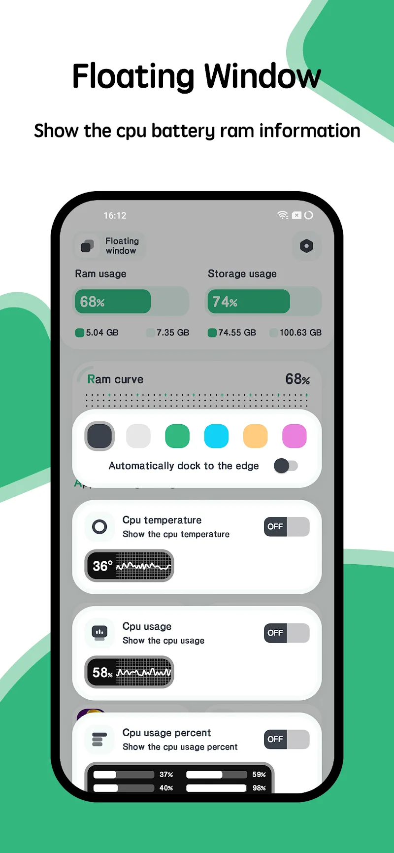 Powerful Ram Monitor Pro Premium and effortlessly without encountering any troubles or restrictions. It makes a difference that you can rapidly view the data you need.DRIFTING WINDOWThe application brings you an interface window. With this window, you’ll observe execution or data more effectively. Or assist you in quickly accessing the application without having to perform numerous cumbersome operations.The real-time framework shows: The framework will continuously display information in real-time, allowing you to view it whenever nee